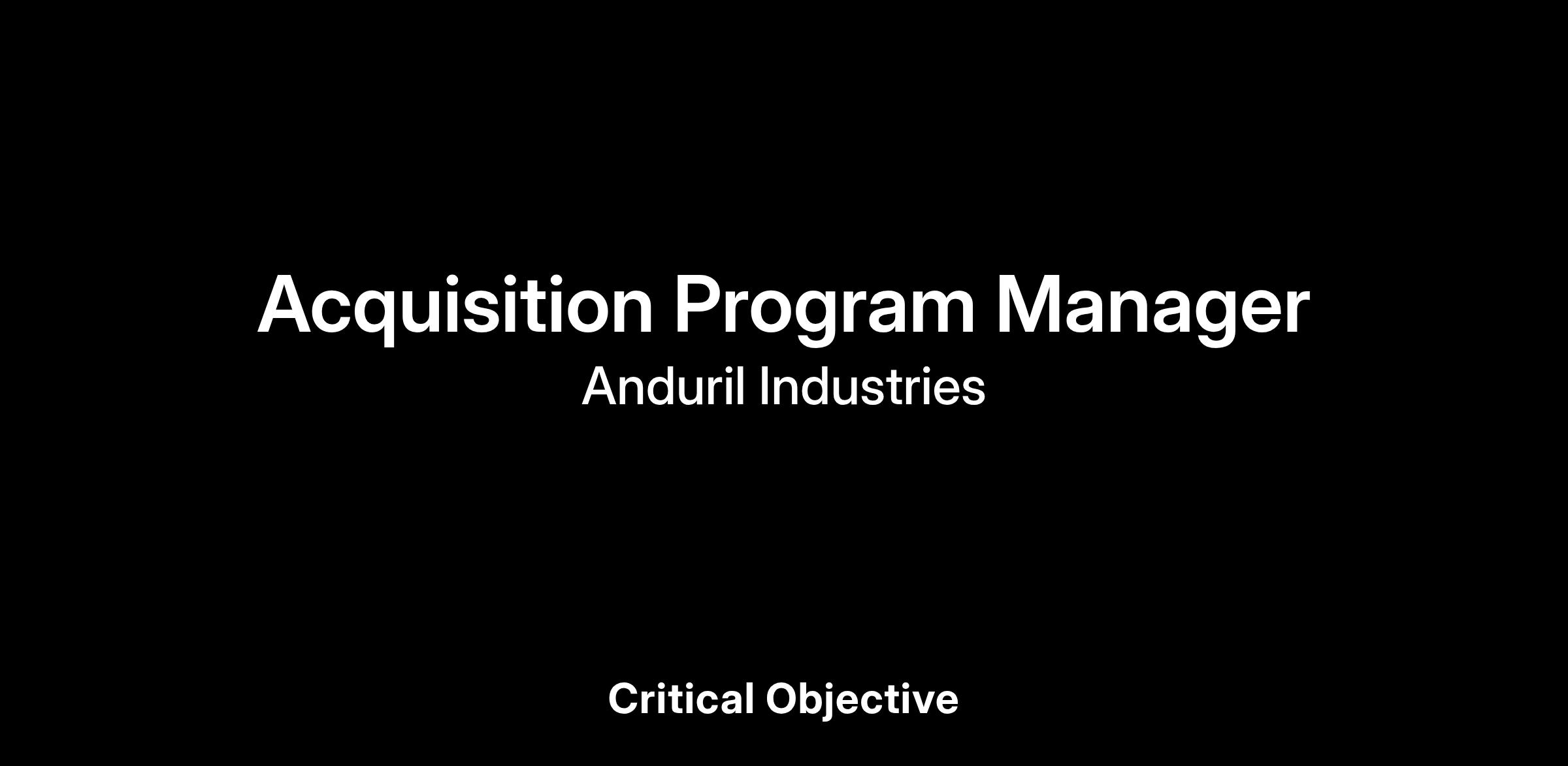 The Corp Tech Acquisition team scopes and manages the implementation of Anduril’s acquired companies. We help enable the new acquisitions to build, ship, and deploy products at scale with Anduril’s systems and processes. As we continue to acquire companies and expand our capabilities, we are seeking a highly skilled Acquisition Program Manager specializing in Mergers & Acquisitions (M&A). This role will lead and coordinate the acquisition process, work with leadership and cross-functional teams to ensure a smooth integration, and manage all aspects of program planning and execution.