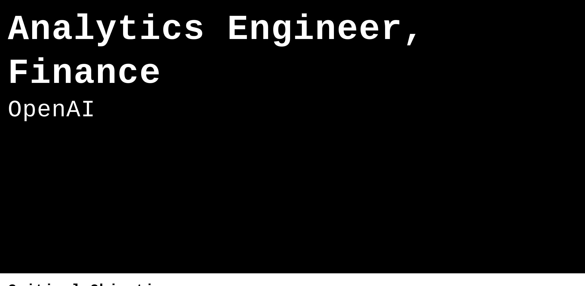The Finance Data team is embedded within the CFO Org and is responsible for building internal data products that scale analytics across business teams and drive efficiencies in our daily operations. This team provides technical guidance on high-impact, scalable projects across Finance, and is the subject-matter expert in financial and transactional data that supports our revenue accounting, compute & infrastructure cost accounting, and strategic finance workstreams.