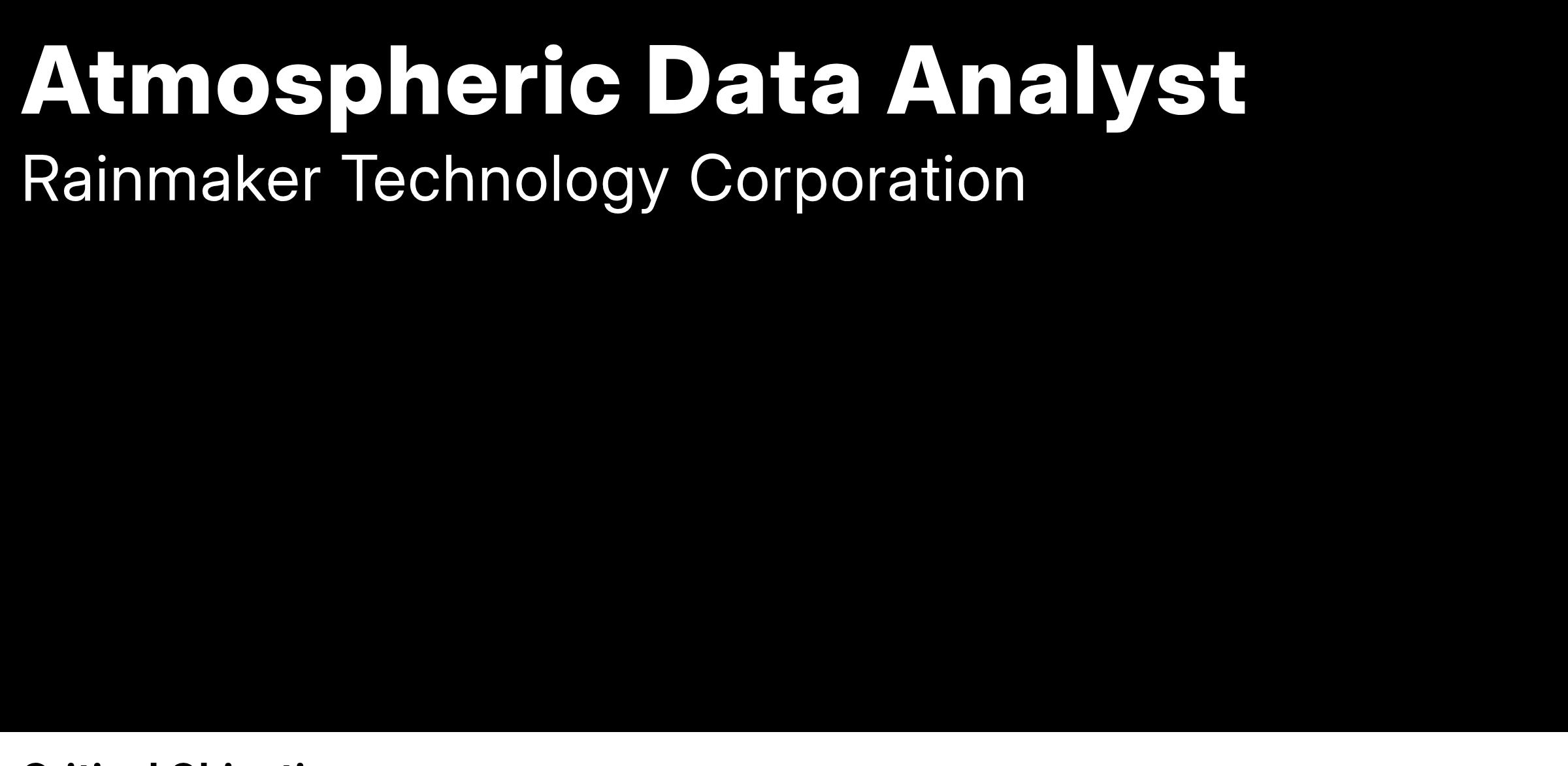 We are seeking an Atmospheric Data Analyst to work with a team of scientists to analyze large atmospheric datasets. The role involves quality control, data wrangling, scientific analysis, and novel algorithmic development using the various datasets. This role also requires a strong understanding of meteorological principles, data science techniques, and data visualization approaches. The analyst will work closely with meteorologists, atmospheric scientists, and software developers to ensure the accuracy and reliability of collected data. Additionally, the analyst may be involved in scientific research projects and contribute to publications.