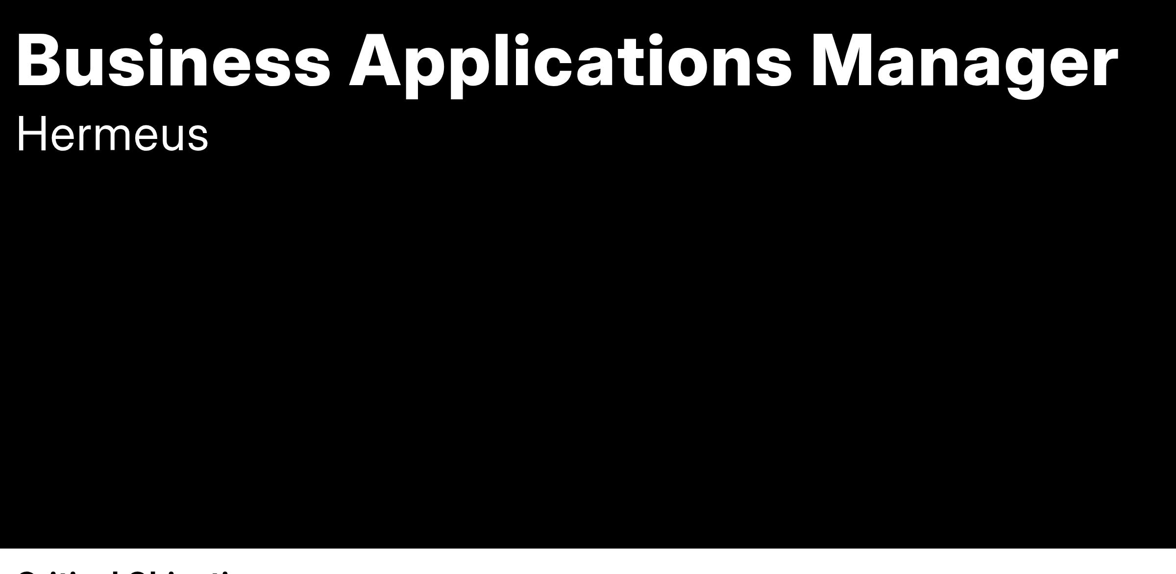 The Business Applications team is responsible for the design, development, configuration, deployment, upgrade, integrations and ongoing support for all Business Applications inside of Hermeus with a primary focus on the Manufacturing Execution System (MES), Manufacturo, and Enterprise Resource Planning (ERP) System, NetSuite, with oversight to all other business applications including but not limited to (e.g. HR, Legal, Invoicing, Pricing, Barcode printing, etc).