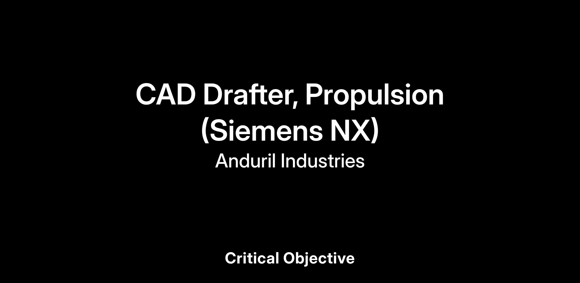 We are looking for a Propulsion Drafter to enhance our Propulsion Development team. This role is critical in developing and optimizing advanced propulsion systems to meet our aggressive and innovative goals. You will be responsible for maintaining the engineering Bill of Materials of propulsion assemblies critical to the success of the company.