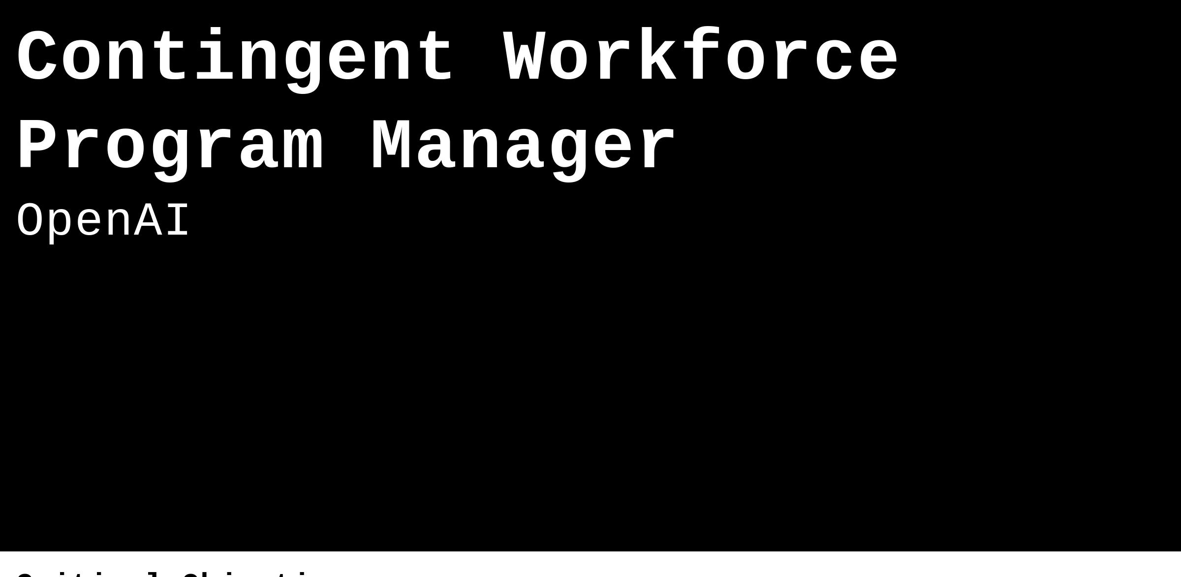 The Contingent Workforce Team is an integral part of the Procurement team, ensuring OpenAI acquires the right talent at the right time in the most efficient way possible. This team is obsessed with customer service, eliminating friction in processes and policies, and developing a best-in-class contingent workforce strategy that supports OpenAI’s rapid growth.
