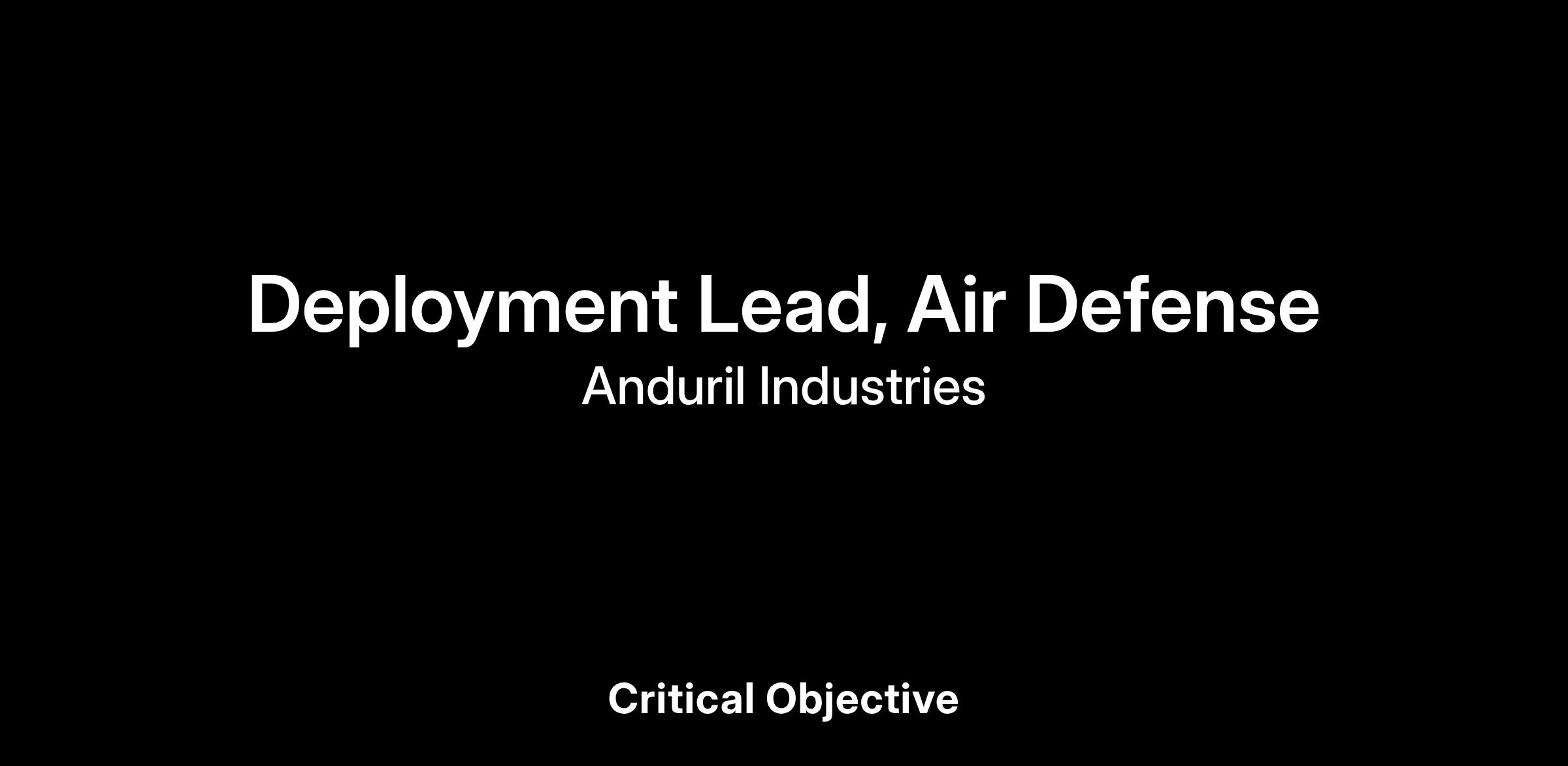 In your role as a Mission Operations Deployment Lead on the Air Defense team, you are responsible for delivering and sustaining a capability that meets our customers’ mission requirements and exceeds their expectations. You fulfill this responsibility through rigorous operational execution, detail orientation, proactive communication, deep mission understanding, and hard-won product expertise. You feel ownership over the health and performance of all assets and technologies deployed to your customers and users, and ensure that the system delivers when they need it most. You represent Anduril to our customers, building their confidence and trust through your professionalism and commitment to excellence. You also represent our customers back to Anduril, communicating user feedback and lessons learned to continuously improve our product and our team in response to evolving mission needs. Above all, you set the standard for what good looks like for your deployment, and you rally your Anduril teammates to meet that standard every single day.
