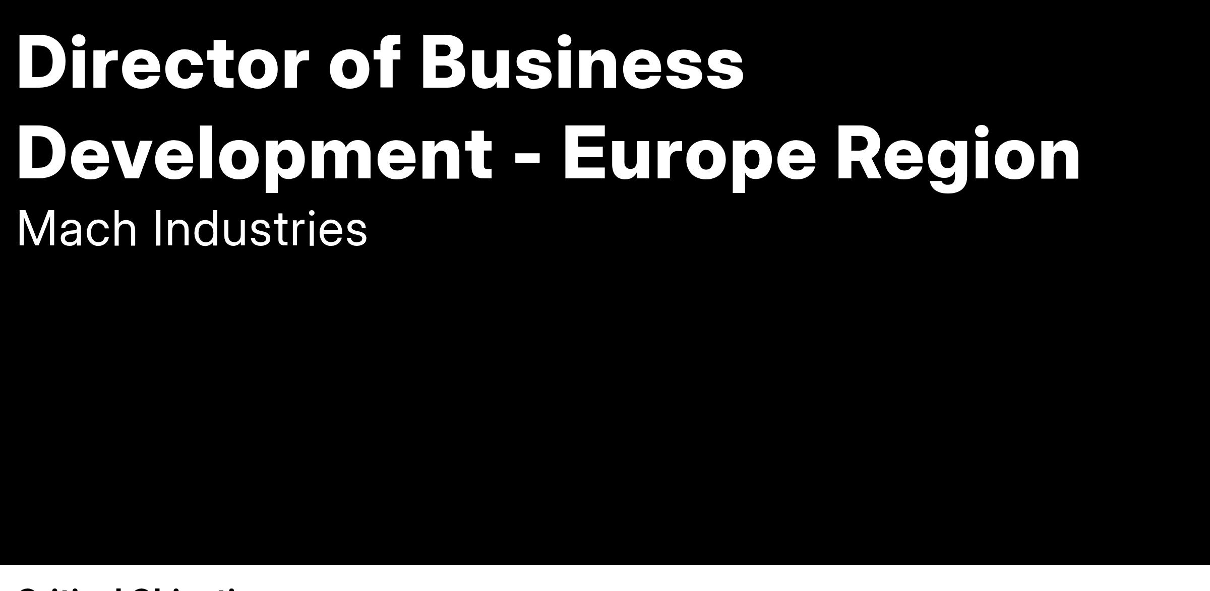 At Mach Industries, we build next-generation platforms that maintain an allied American advantage. The future of warfare lies in decentralized unmanned systems, and we aim to produce these platforms at scale using flexible, adaptable factories. As the Director of Business Development - Europe Region, you will bridge innovation and opportunity, forging critical relationships and securing high-value contracts to ensure our platforms meet the unique needs of European stakeholders while advancing global security and preparedness.