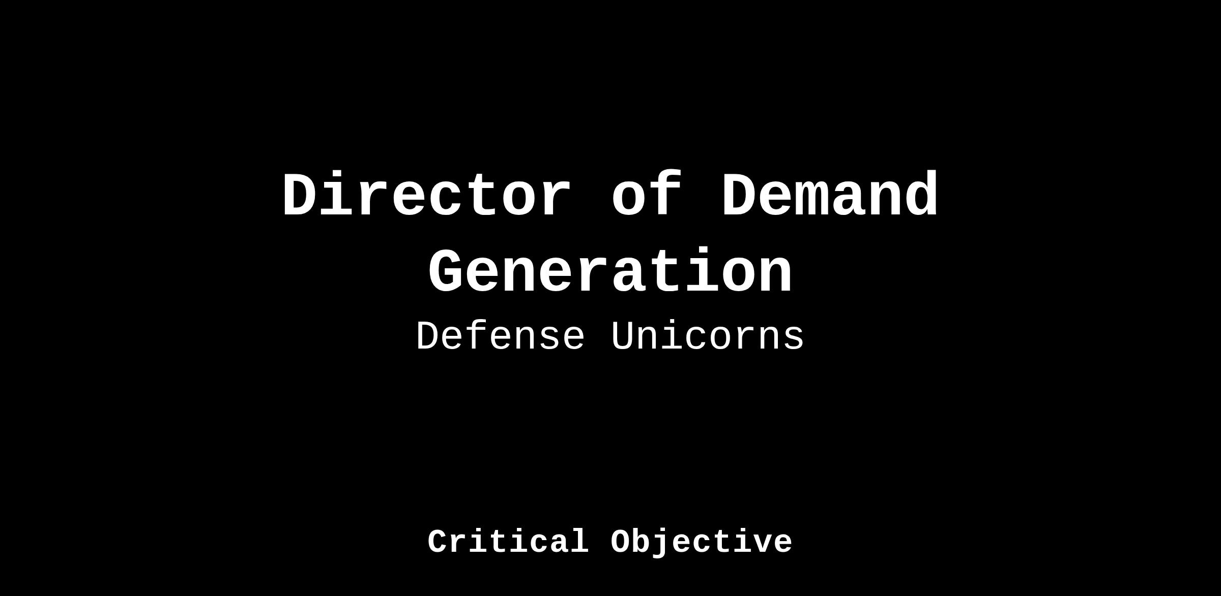 We are seeking a Director of Demand Generation to establish and scale our demand engine, driving predictable pipeline creation across enterprise (B2B) and government (B2G) accounts.