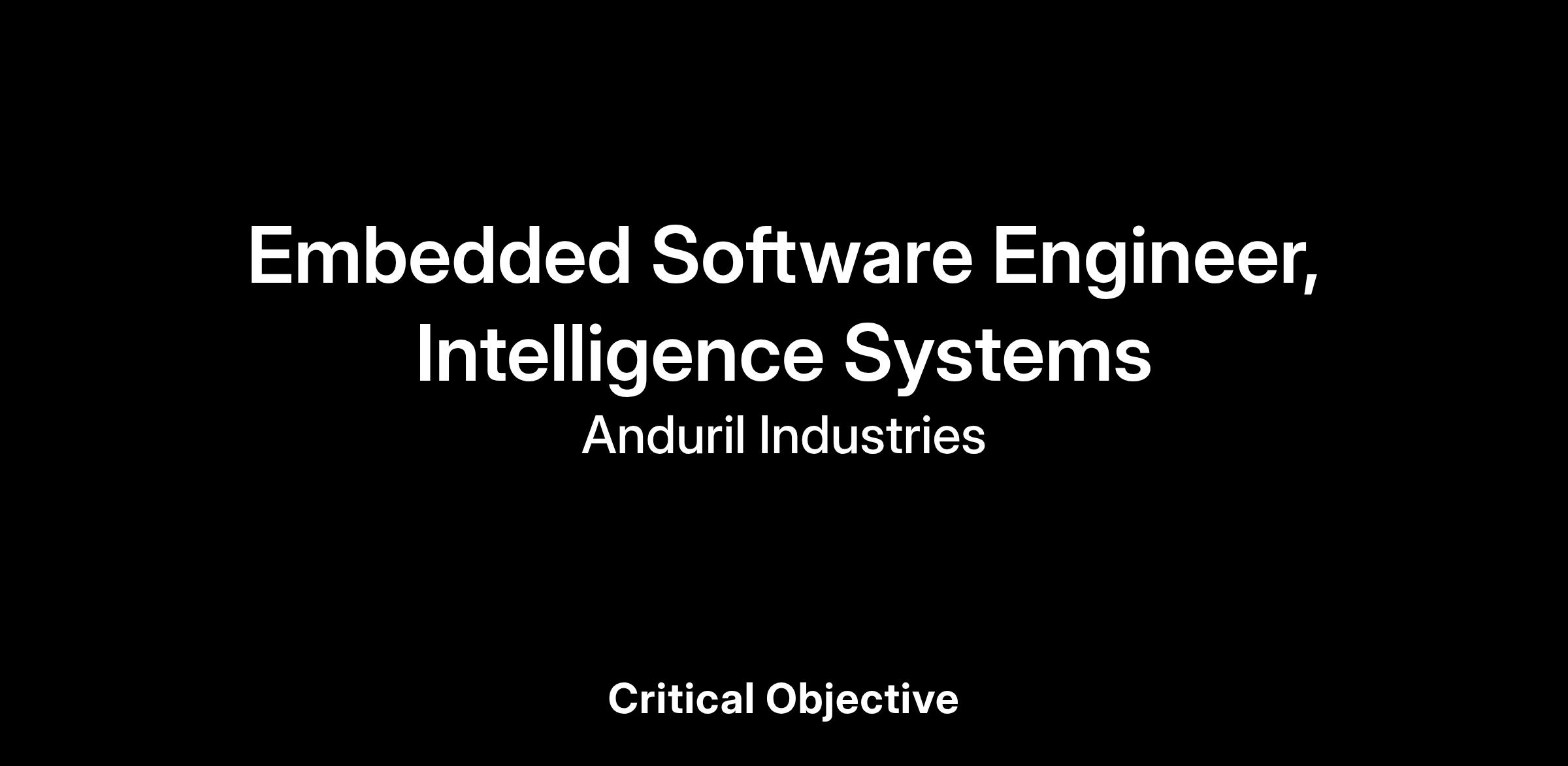 As an Embedded Software Engineer, you will solve a wide variety of problems involving networking, autonomy, systems integration, robotics, and more, while making pragmatic engineering tradeoffs along the way. Your efforts will ensure that Anduril products seamlessly work together to achieve a variety of critical outcomes. Above all, you must be driven by a “Whatever It Takes” mindset—executing in an expedient, scalable, and pragmatic way while keeping the mission top-of-mind and making sound engineering decisions to deliver successful outcomes correctly, on-time, and with high quality. Not only will you build the software, but you’ll also have the opportunity to work with the customers to deploy it.