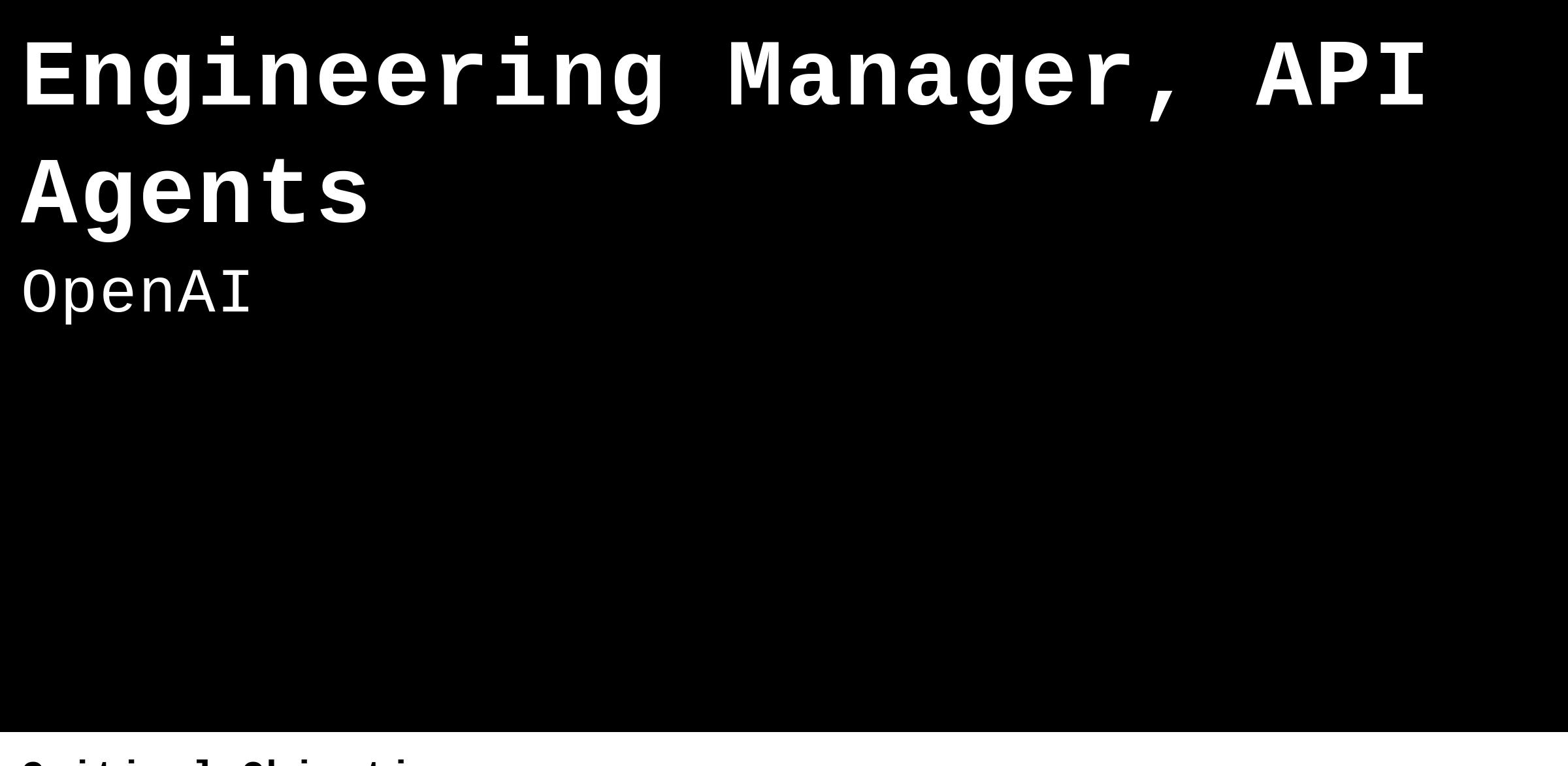 OpenAI's API Agents Team builds external APIs that allow developers to create agentic workflows using our reasoning models. The team deploys flagship models and products like O1, Realtime API, and Assistants API and contributes to developer focused model improvements through collaboration with our Post Training teams.