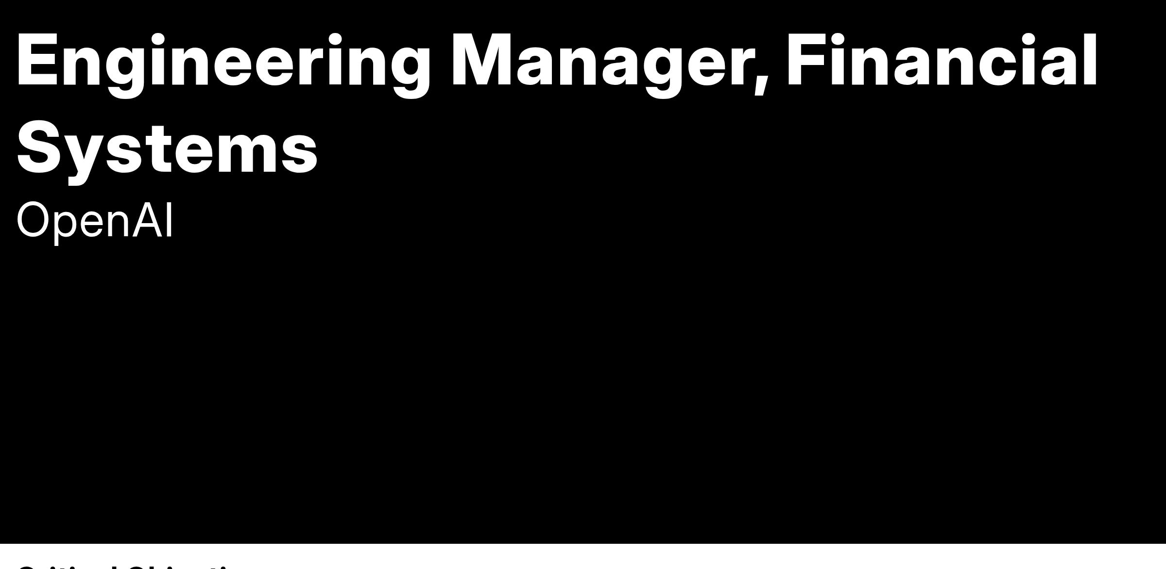 Join us to shape the next generation of financial systems, enabling OpenAI’s products to scale responsibly and securely.