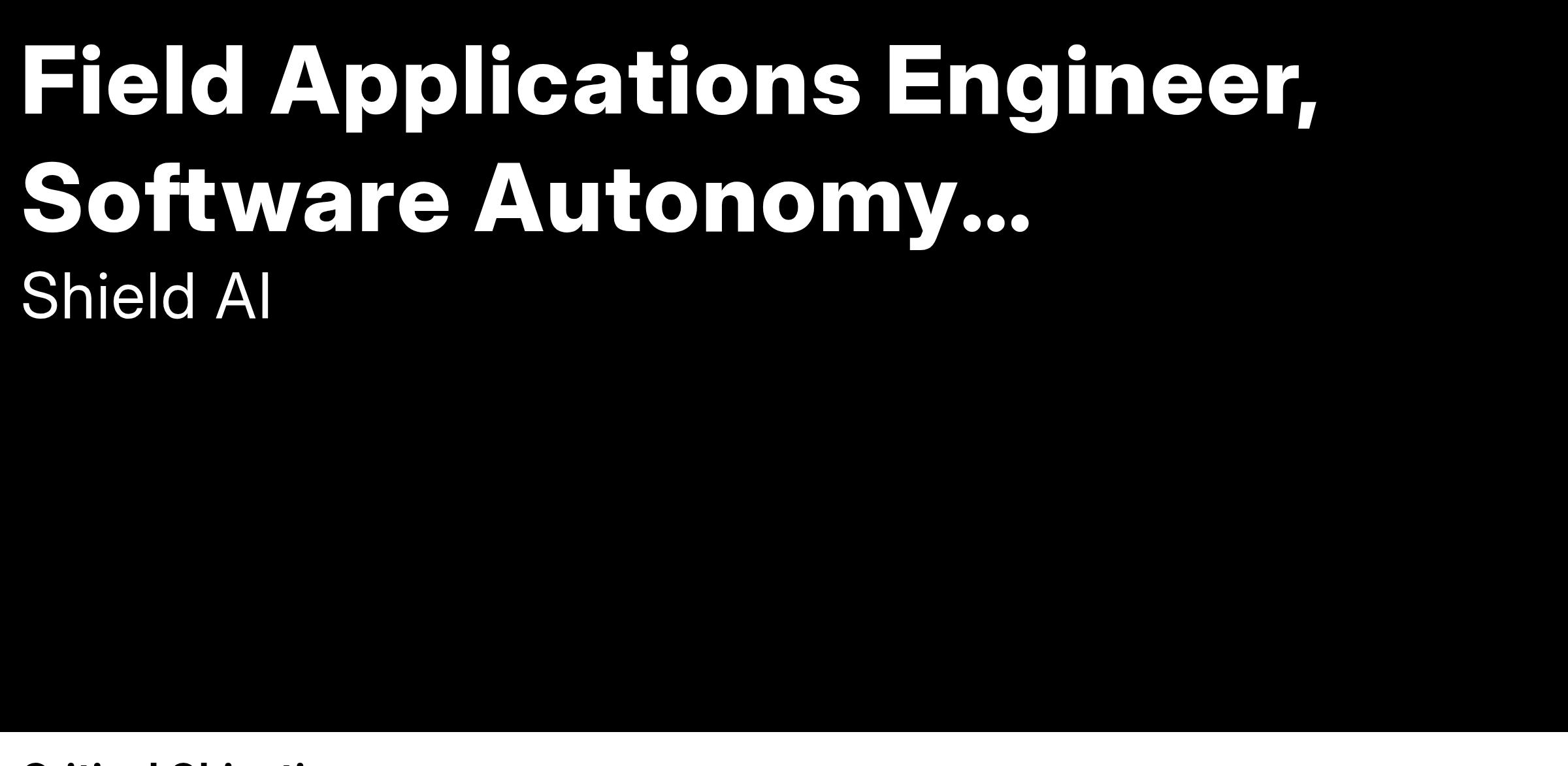 - Assist in post-sales deployment and integration of Shield AI enterprise software products.