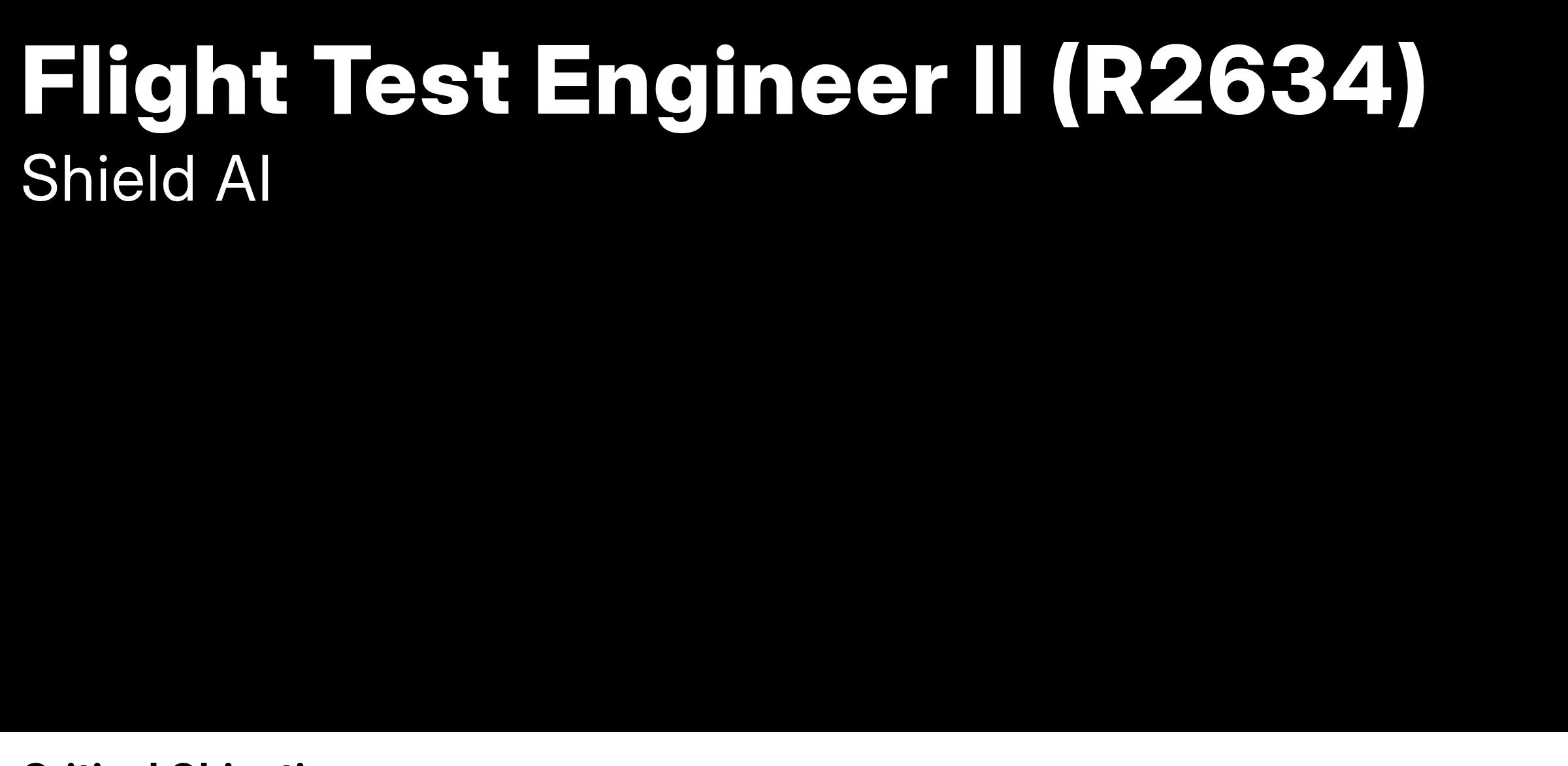 Are you a passionate, innovative, and experienced in aircraft ground and flight system-level testing looking to help develop state-of-the-art AI and robotics products? Are you eager to make a positive difference in the world? Do you want to work alongside mission driven and values focused teammates? Shield AI is just the place for you!