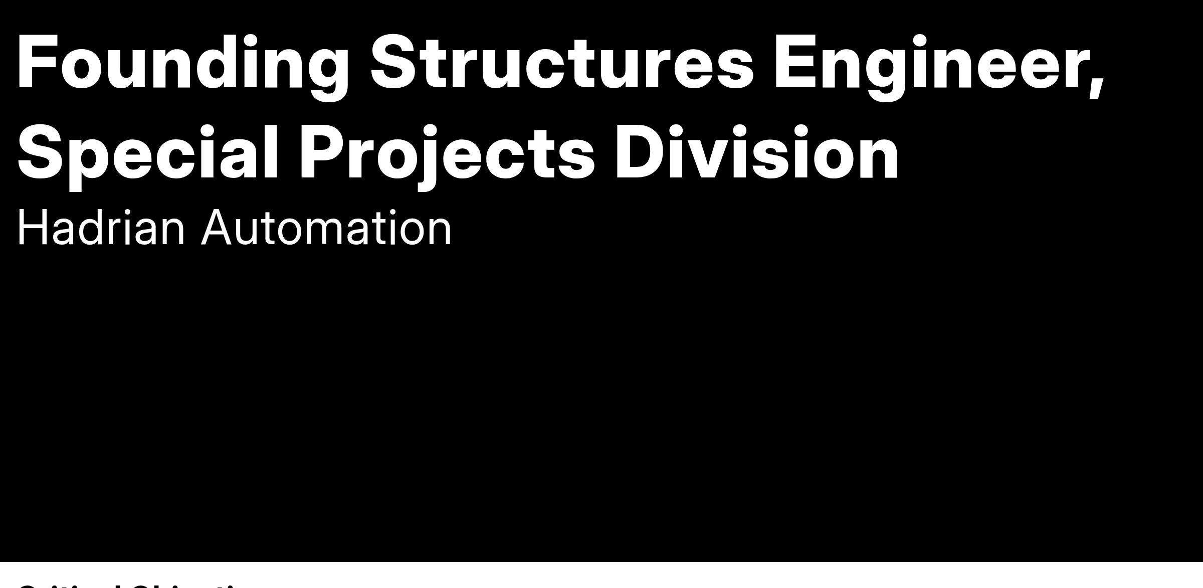 You will be a founding member of Hadrian’s new Special Projects division, collaborating directly with the CEO and engineering leadership. This division is responsible for focusing on ambitious R&D projects and serving as engineering experts on new business opportunities.