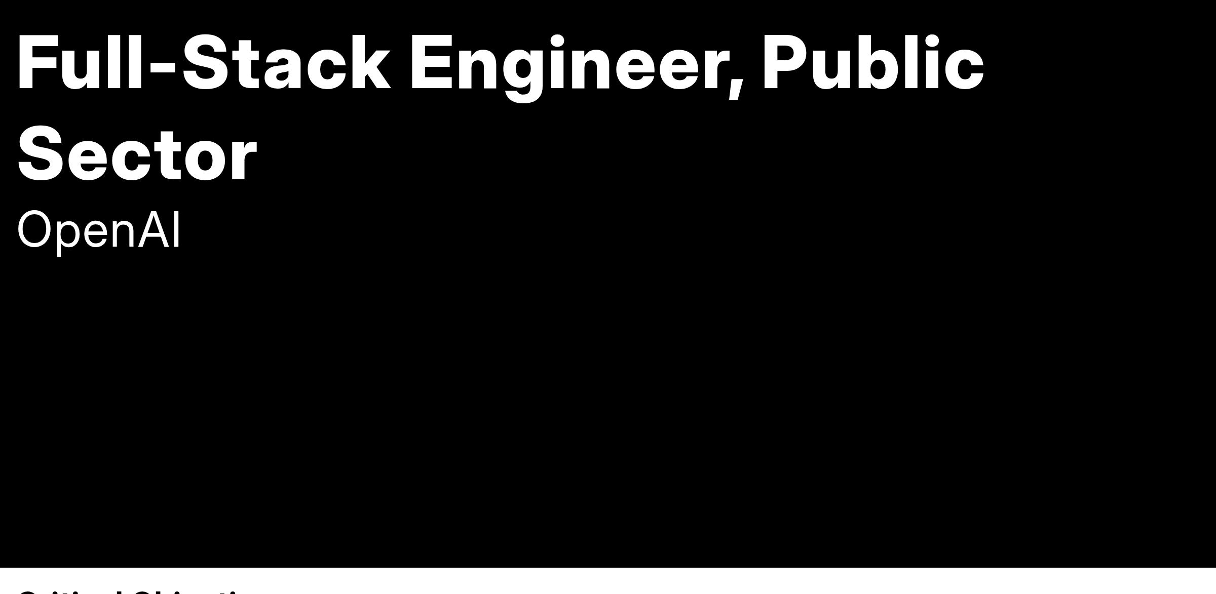 We’re seeking a Full-Stack Engineer who can work across the entire software stack. You’ll join a nimble team where you’ll help drive deployment of OpenAI’s technology into new environments and infrastructure to enable the critical missions in the public sector. This role engages cross-functionally with internal product, security, and compliance teams to build required functionality and ensure we’re delivering a scalable, reliable platform. You’ll interface directly with customers to build the features they need most.