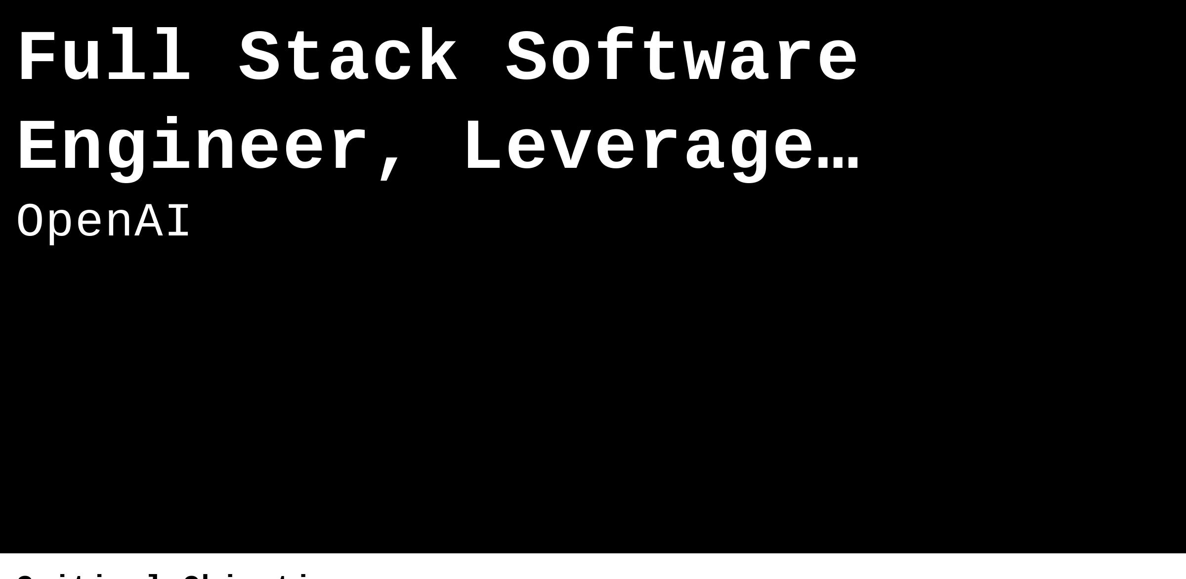 We’re looking for an engineer who’s passionate about blending production-ready platform architecture with new tech and new paradigms. You’ll push the boundaries of OpenAI’s newest technologies to enable interactions and automations that are not only functional, but delightful. We value proactive, product-minded engineers who can see the big picture while staying on top of the little details that define great products.