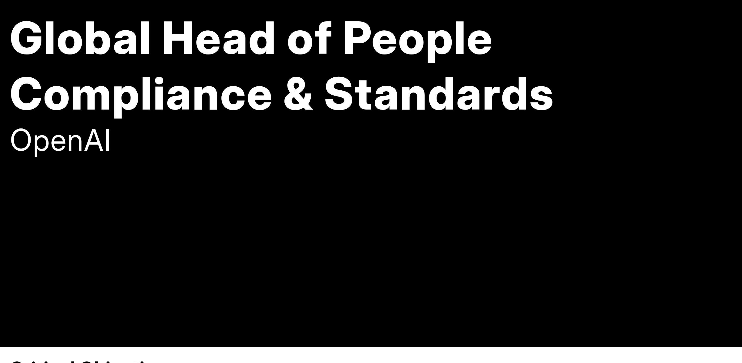 We are seeking a strategic, experienced, and proactive Head of People Compliance & Standards to join our Global Employee Relations and People Standards team. You will play a critical role in building and executing OpenAI’s global People compliance function, developing and maintaining policies, procedures, and programs that promote a compliant, ethical, and respectful workplace. You’ll balance high-level strategy with hands-on program execution in a fast-paced, innovative environment.