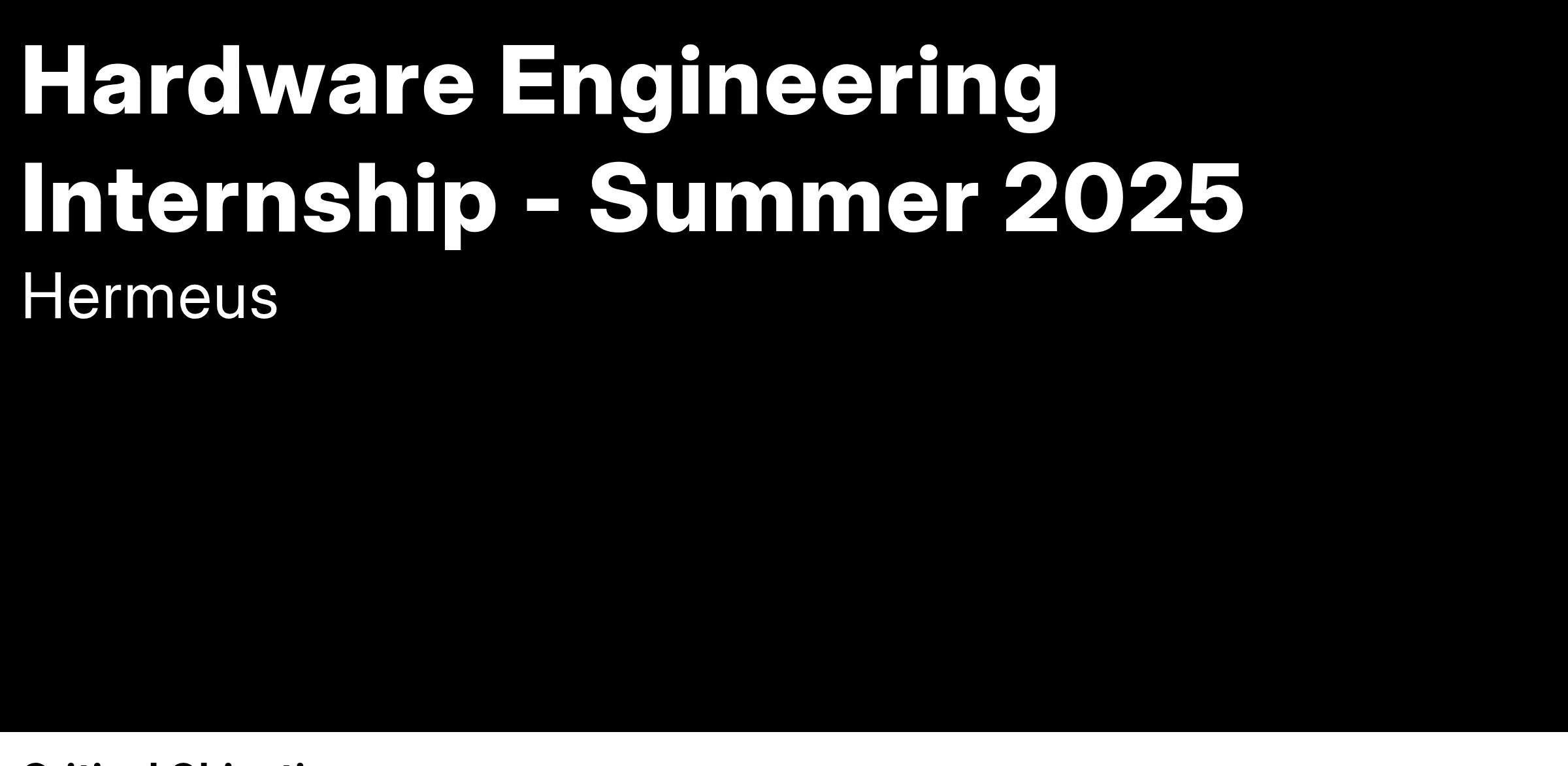As a Hardware Engineering Intern, you will work on the full spectrum of aerospace vehicle design, from structures and mechanisms to fluid systems and avionics integration. This internship provides a hands-on opportunity to contribute to the development, manufacturing, and testing of Hermeus’s next-generation hypersonic vehicles.