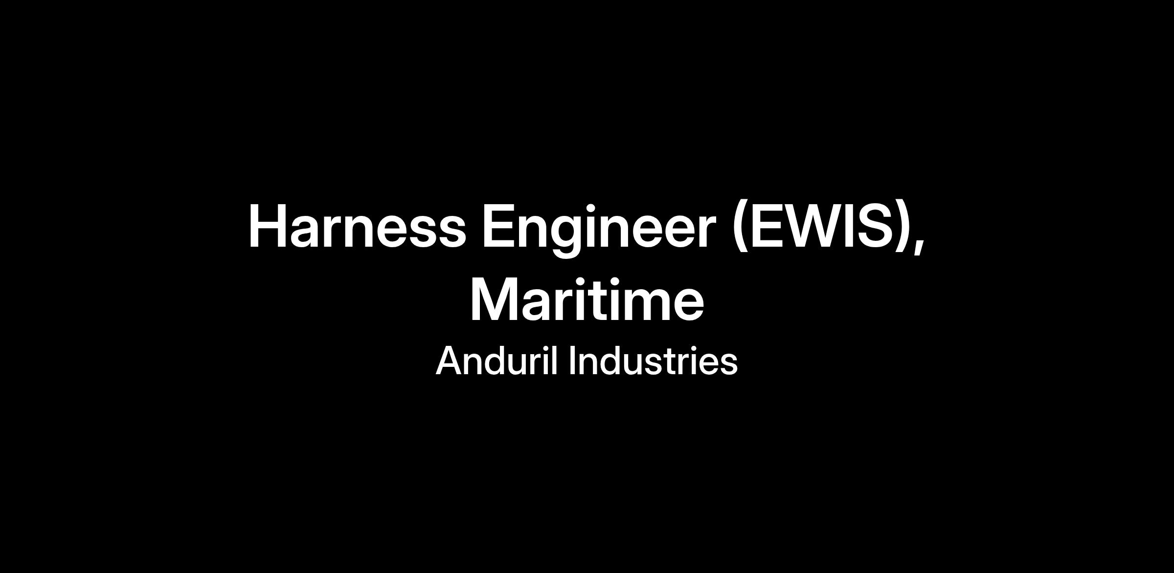 We are seeking a highly motivated and experienced Harness Engineer to join our Maritime team. You will work closely with the program leadership and a wide spectrum of cross-departments as part of a team focused on solving hard problems and changing the industry forever. In this role you will be joining our dynamic team and helping us build the next generation of Autonomous Underwater Vehicles (AUVs) that will redefine underwater operations.