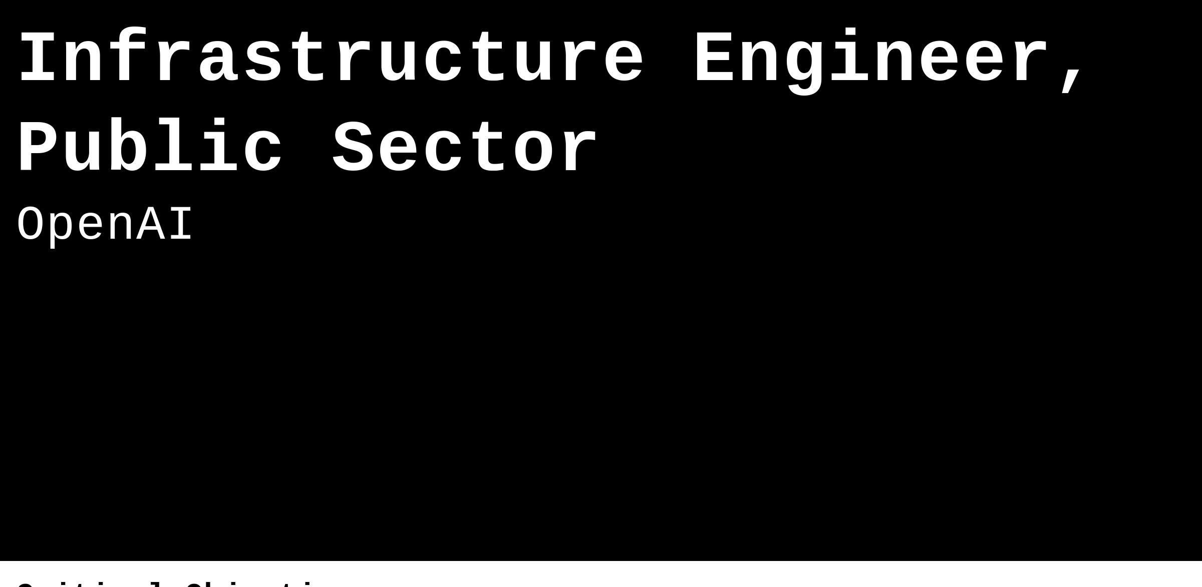 We’re seeking an Infrastructure Engineer with experience in building and operating infrastructure at scale. You’ll join a nimble team where you’ll help drive deployment of OpenAI’s technology into new environments and infrastructure to enable the critical missions in the public sector. This role engages cross-functionally with internal product, security, and compliance teams to build required functionality and ensure we’re delivering a scalable, reliable platform that can run wherever our customers need our technology most.
