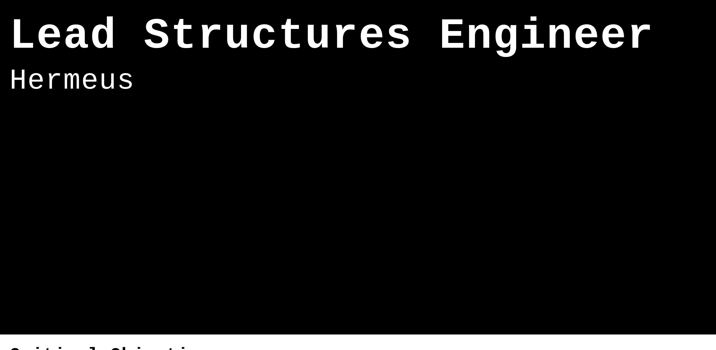 In this role, you will lead the design, analysis, and optimization of airframe structures for our hypersonic aircraft, ensuring they meet all safety, performance, and regulatory requirements. You will collaborate closely with cross-functional teams to drive innovation and ensure the structural integrity of our cutting-edge vehicles.