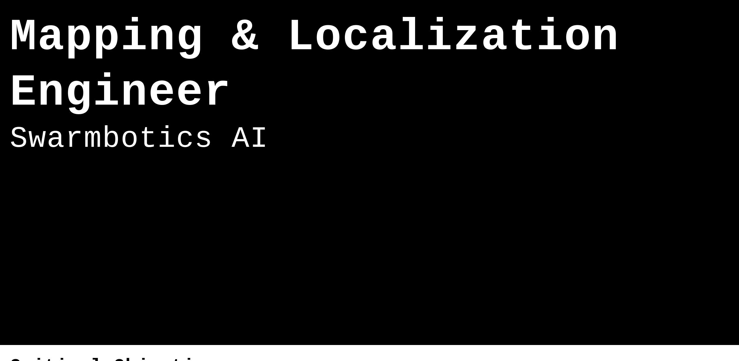 Swarmbotics is on the forefront of deploying unmanned ground vehicle (UGV) swarms for defense applications and is seeking a highly skilled Simultaneous Localization & Mapping (SLAM) Engineer to join our team. This role is crucial in designing, implementing, testing, and maintaining the SLAM systems that enable our unmanned ground vehicles to navigate and map their environments accurately and, ultimately, in GPS denied/degraded areas. The ideal candidate will specialize in SLAM algorithms, sensor fusion, real-time localization, and mapping, ensuring our robotic swarms can operate effectively in diverse and challenging environments. The selected candidate will have the opportunity to build a modern SLAM stack and apply that capability in a single-agent and collaborative, multi-agent context.