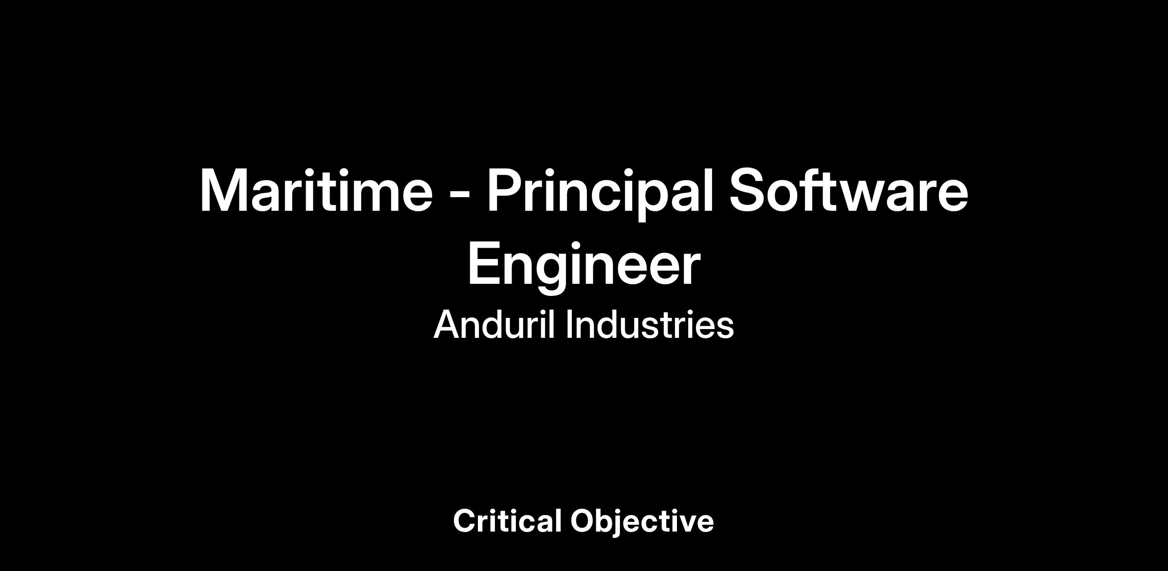 Anduril is a defense technology company, bringing Silicon Valley talent and funding to the defence sector. Our technology helps our customers solve their toughest challenges by enabling them to make better, more informed decisions in life-and-death situations. We’ve assembled a diverse team of experts in software, robotics, artificial intelligence, sensor fusion, and data analysis to create software and hardware solutions that radically evolve the defense capabilities of the United States, and are now seeking to sustain our early successes with deep investment in new domains, including maritime. If you are passionate about solving problems that have real impact, we want you to join Anduril and help us build the future of defense capability.