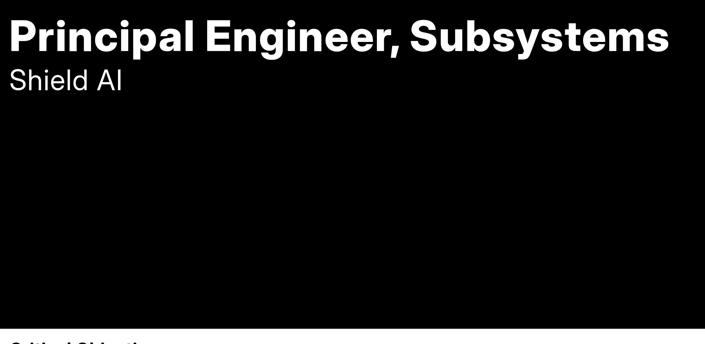 Shield AI is seeking a Principal Engineer, Subsystems to lead the design, integration, and optimization of aircraft subsystems for our next-generation autonomous aircraft.
