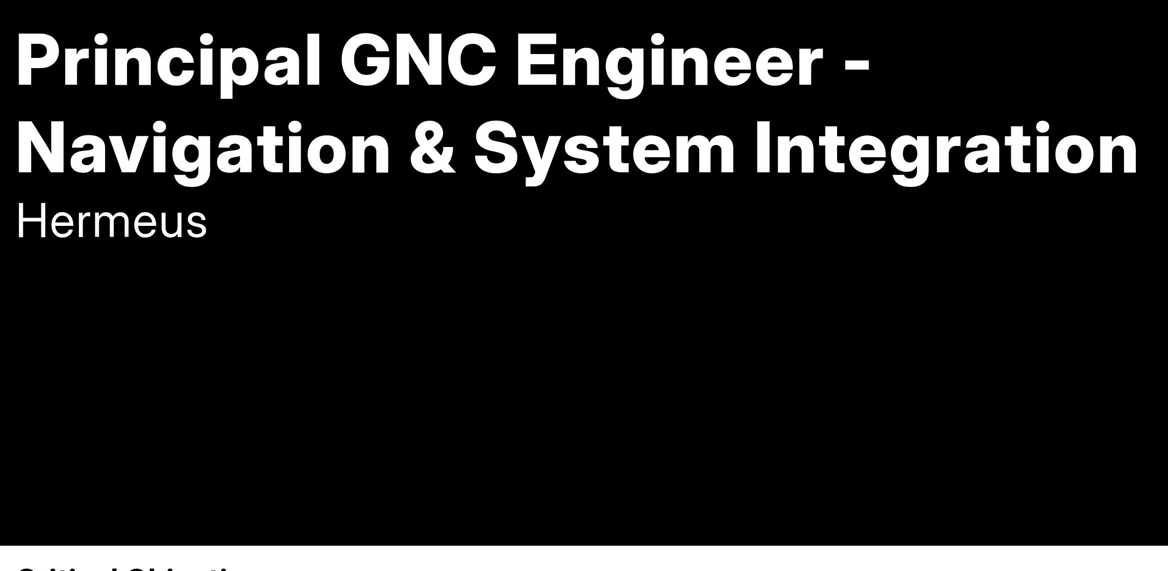The Navigation and System Integration GNC Engineer will be responsible for: