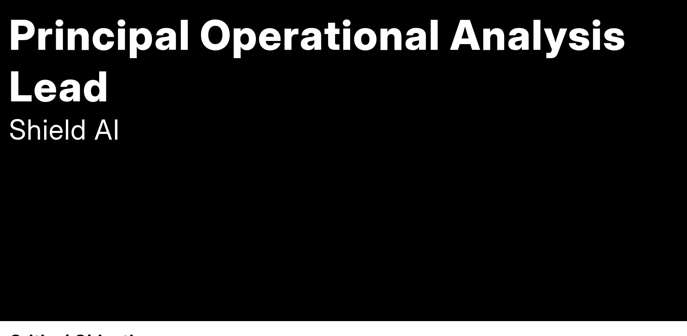 - Identify emerging threats and operational challenges, ensuring Shield AI’s systems remain ahead of adversary capabilities.