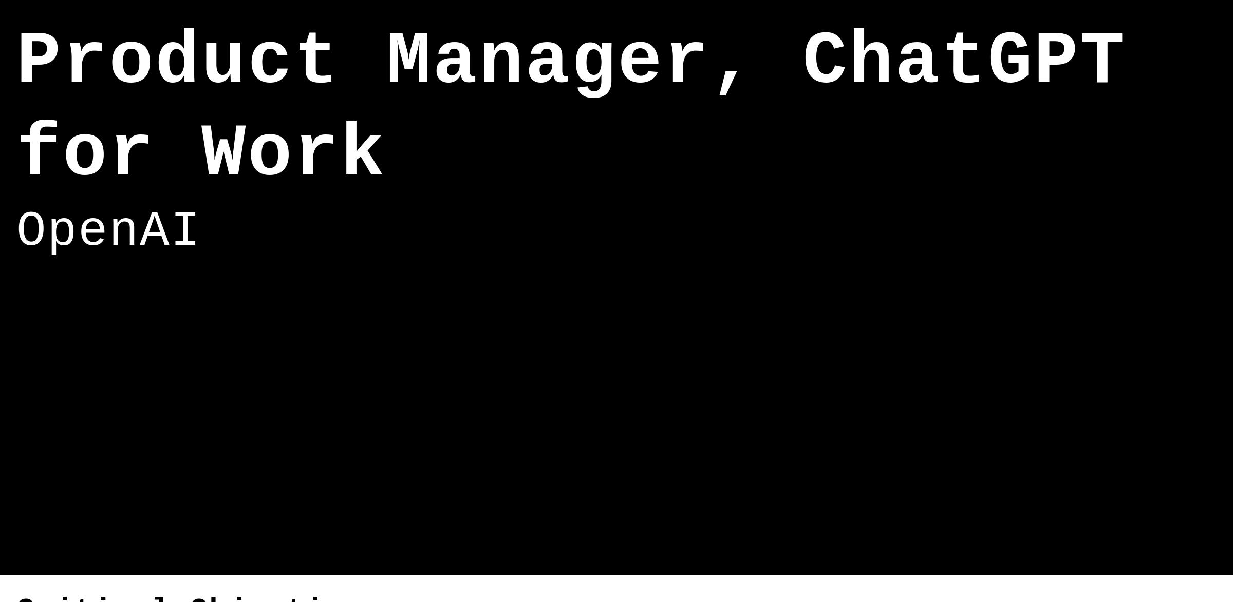 We are seeking an experienced Product Manager to help bring ChatGPT to some of the largest companies in the world. The ideal candidate has experience building products for businesses and consumers and is passionate about working with strategic customers and our GTM team. This role requires close collaboration with our research, engineering, design and GTM teams.