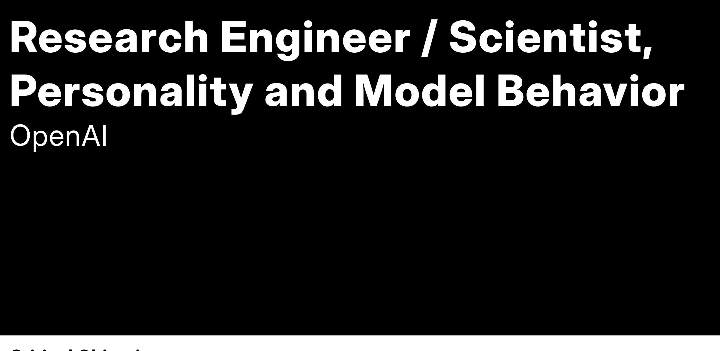 The Personality & Model behavior team conducts research on how to shape personalities and guide the behavior of models behind ChatGPT and APIs. We integrate those research into the final products of OpenAI that are used by hundreds of millions of users.