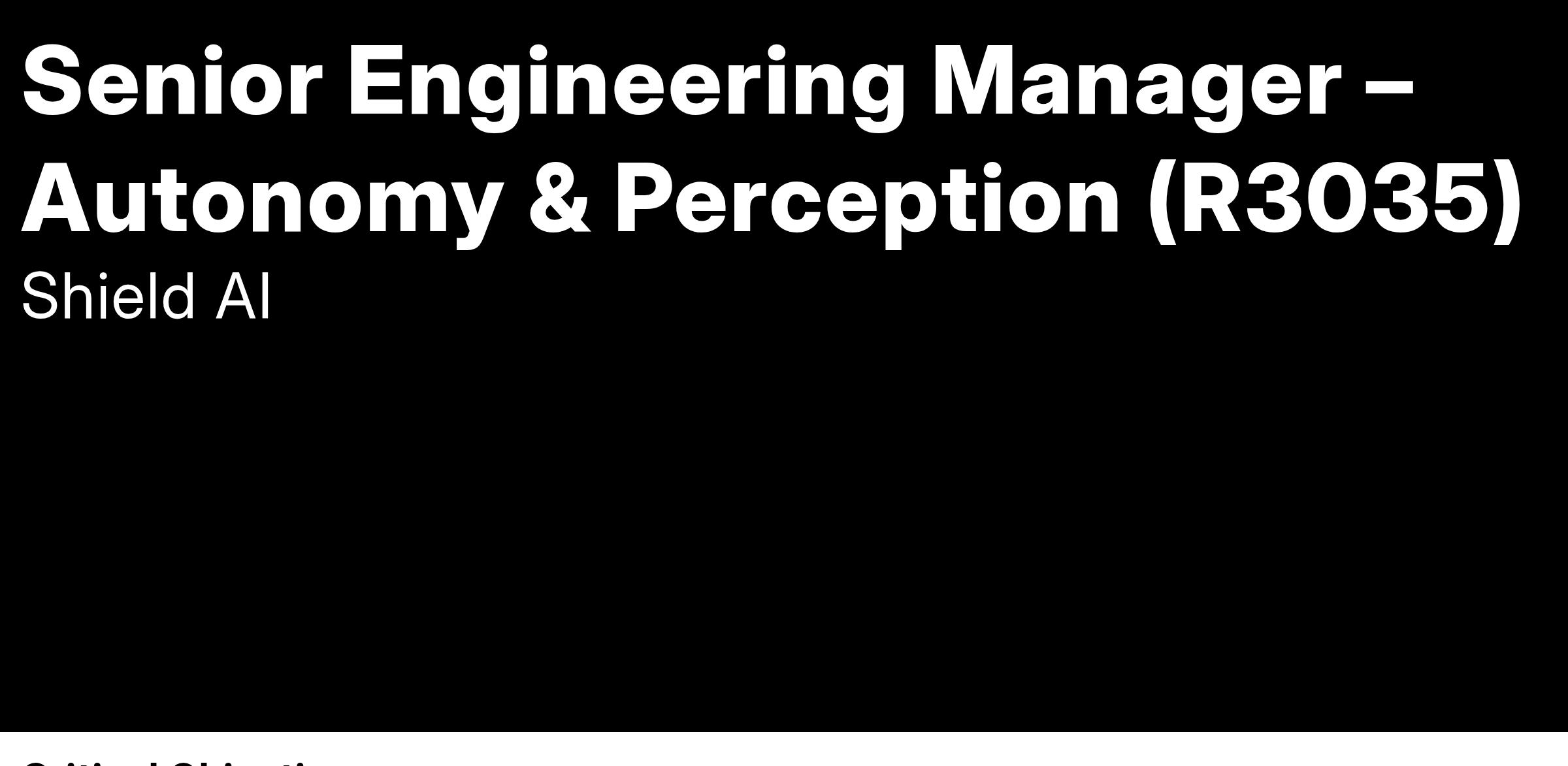 As a senior leader in the Hivemind autonomy organization, you will contribute to an ambitious mission to design, develop, integrate, test, and deploy the world’s best AI Pilot—capable of executing any mission on any platform. Your expertise in one or more core perception technologies, such as state estimation, object detection, classification, tracking, and sensor fusion, will be instrumental in driving this mission forward.