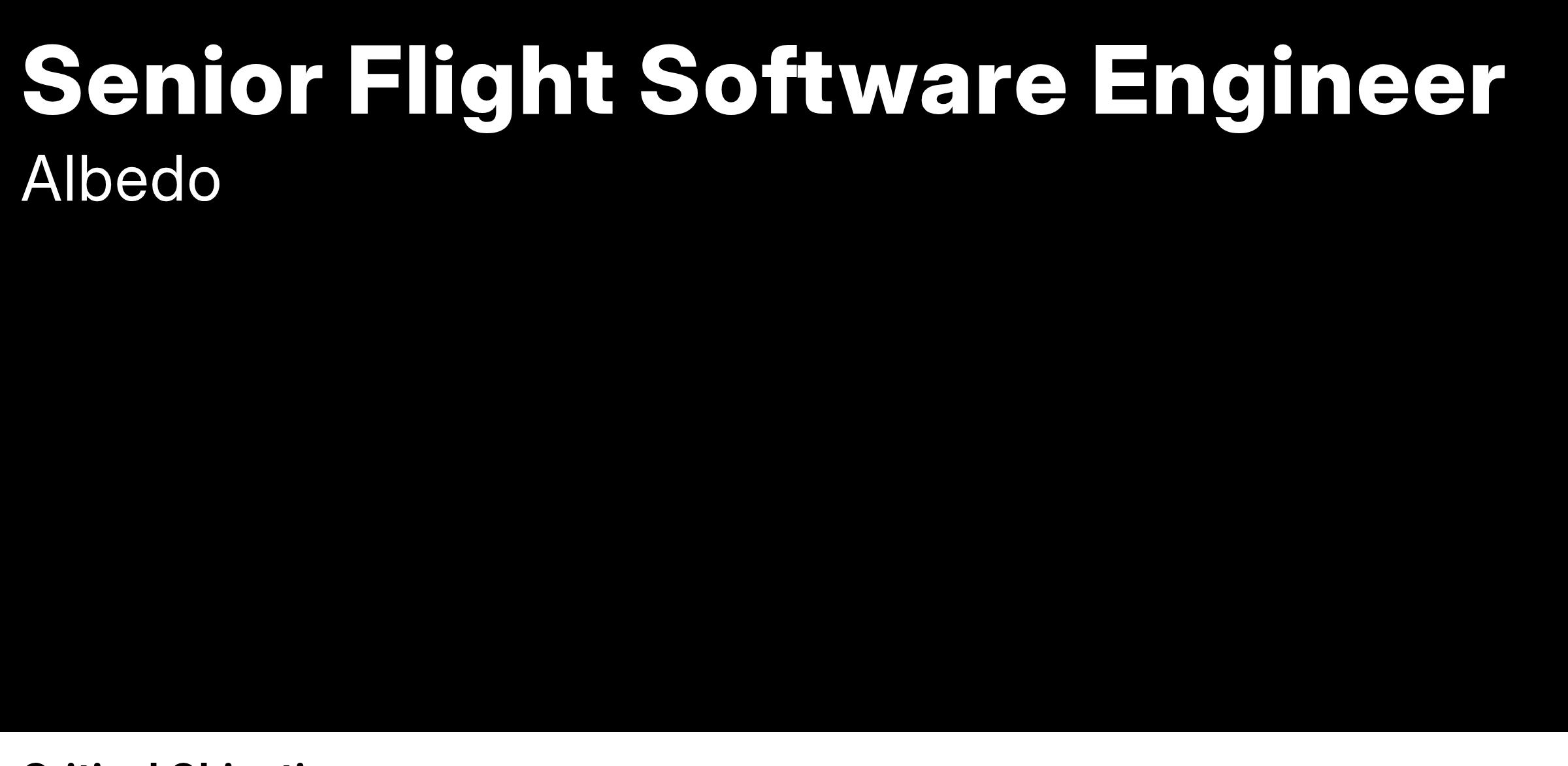 At Albedo our mission is to bring 10-cm imagery to the masses, and as our Flight Software Engineer, you’ll be playing a critical part in our software development, verification, and roadmap to the future!