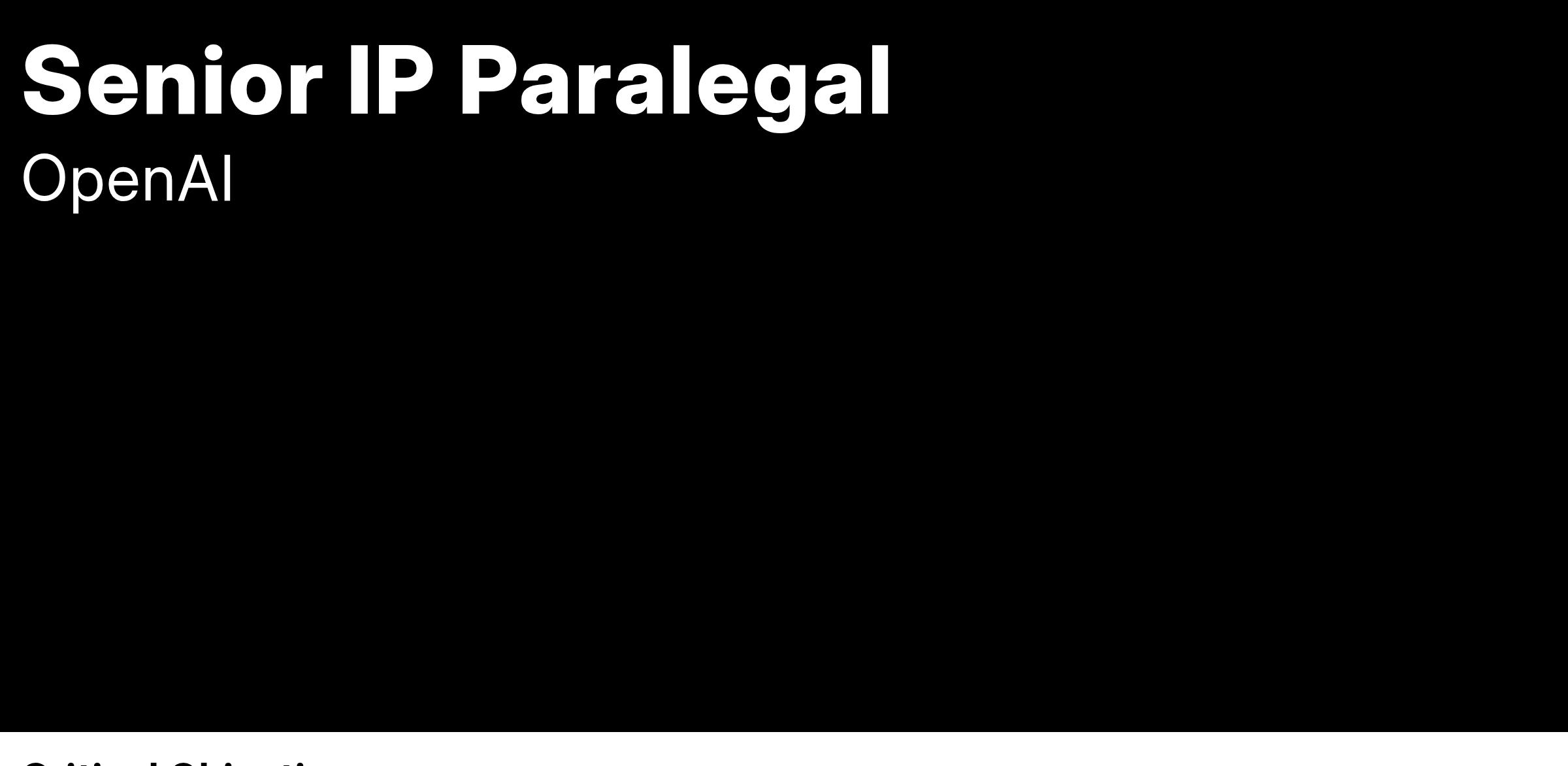We’re growing our world-class legal team and seek an experienced Senior Intellectual Property (IP) Paralegal to join our team and provide paralegal support and coordination across multiple IP functions. The role will assist with a variety of projects and processes, including those supporting patent development, trademarks, and open source compliance. The ideal candidate will have extensive experience in patent law, exceptional organizational skills, and a proven ability to handle a high volume of administrative tasks. This role is highly cross-functional across OpenAI, including work across our Legal, Global Affairs, Research, Product and Executive teams. In addition, you will help develop/improve processes and programs to help our team operate efficiently.