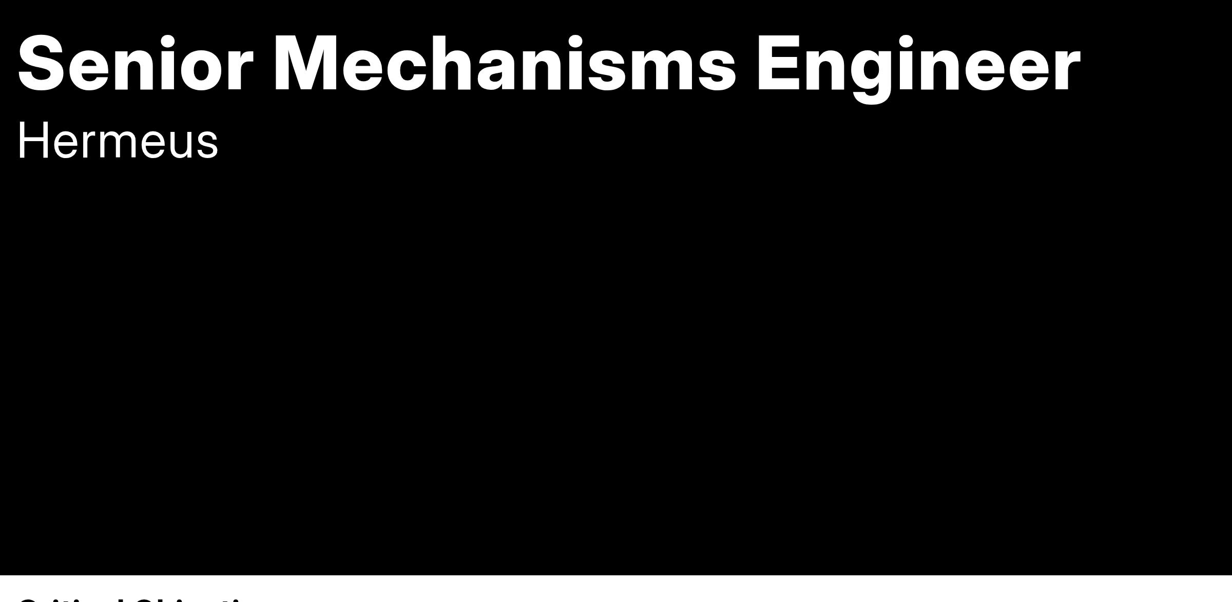 Hermeus is seeking a Senior Mechanisms Engineer to join our Vehicle & Mechanisms Team. In this senior-level role, you will be responsible for designing and developing complex mechanical systems and mechanisms that are critical to the success of our high-speed aircraft projects.