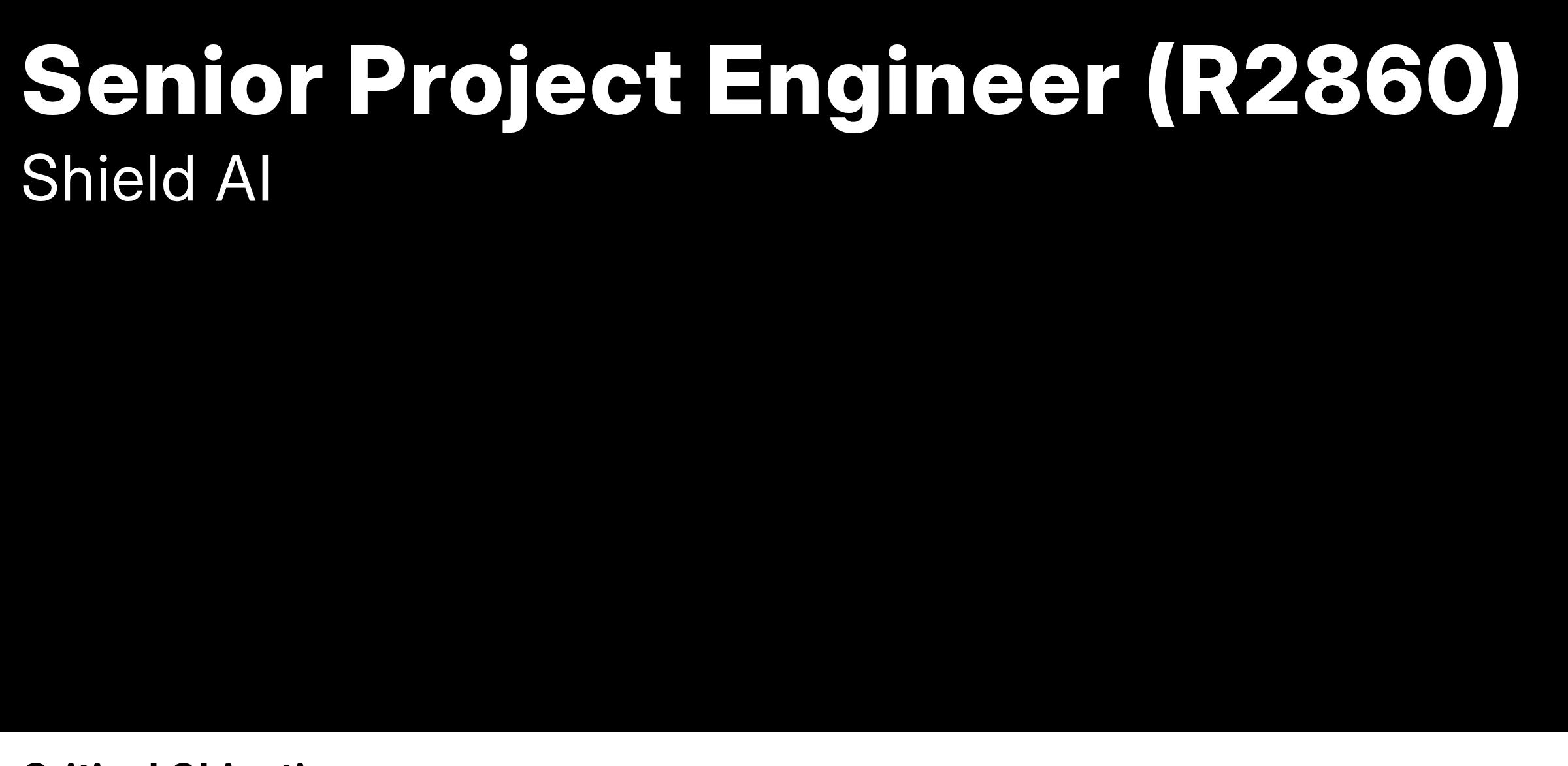 At Shield AI, we are revolutionizing defense technology with AI-powered autonomous systems. As a Project Engineer, you’ll be at the forefront of driving cutting-edge programs from concept to deployment, working alongside a world-class team of engineers, program managers, and technical leaders. This role is perfect for a detail-oriented, proactive engineer who thrives in a fast-paced environment and is passionate about AI-driven autonomy, complex system integration, and technical program execution.