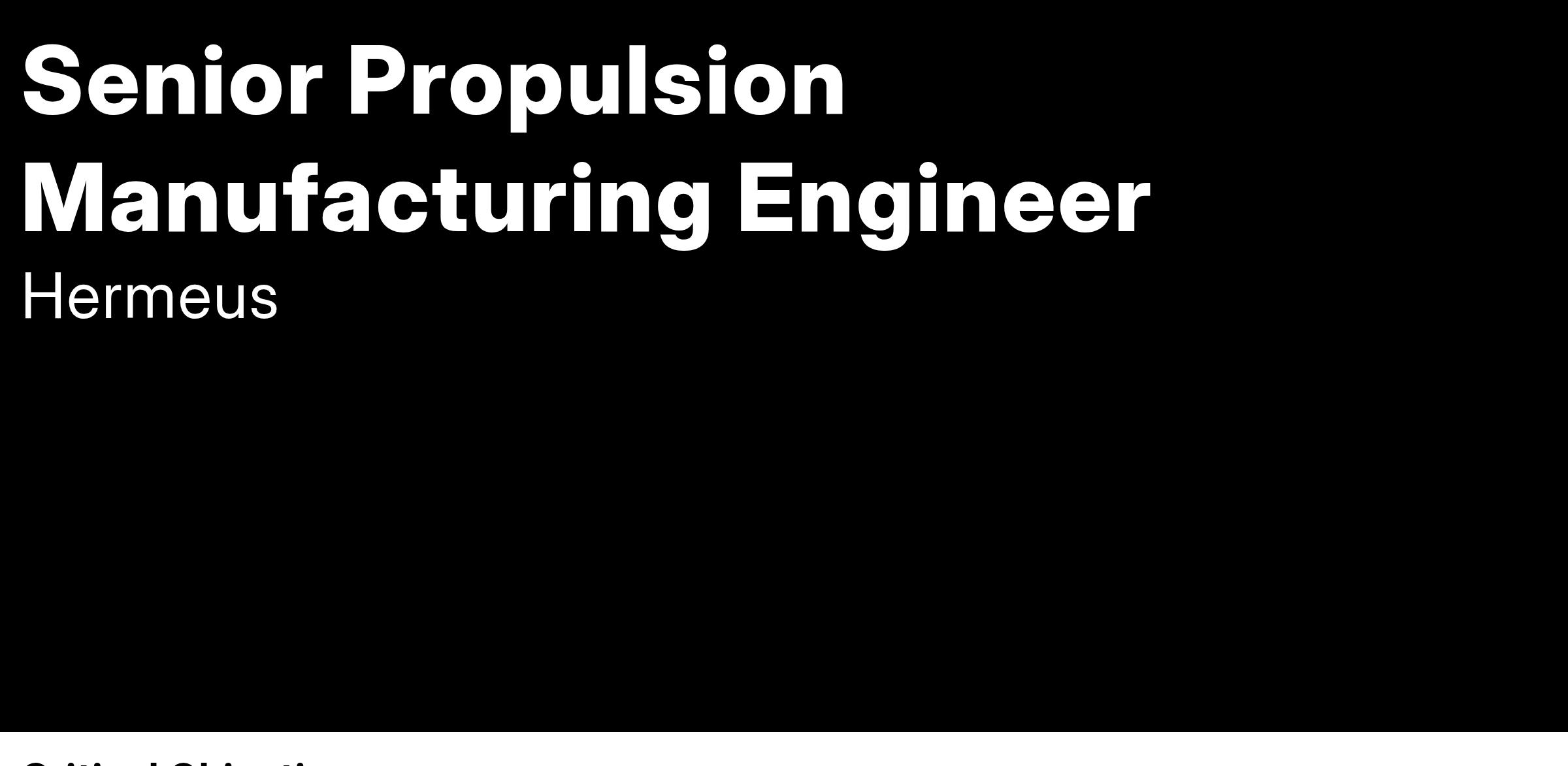 Hermeus is an Equal Opportunity Employer. Employment decisions at Hermeus are based solely on merit, competence, and qualifications, without regard to race, color, religion, gender, national origin/ethnicity, veteran status, disability status, age, sexual orientation, gender identity, marital status, mental or physical disability, or any other legally protected status.