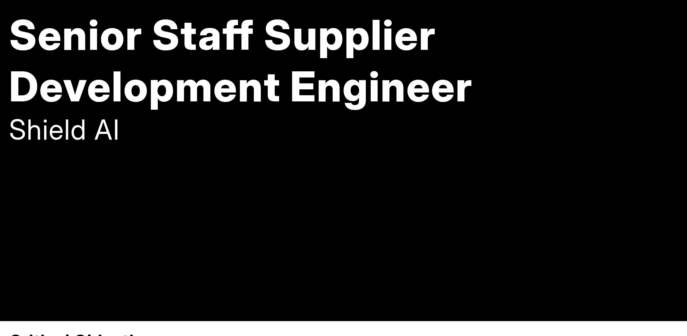Shield AI is proud to be an equal opportunity workplace and is an affirmative action employer. We are committed to equal employment opportunity regardless of race, color, ancestry, religion, sex, national origin, sexual orientation, age, marital status, disability, gender identity or Veteran status. If you have a disability or special need that requires accommodation, please let us know.