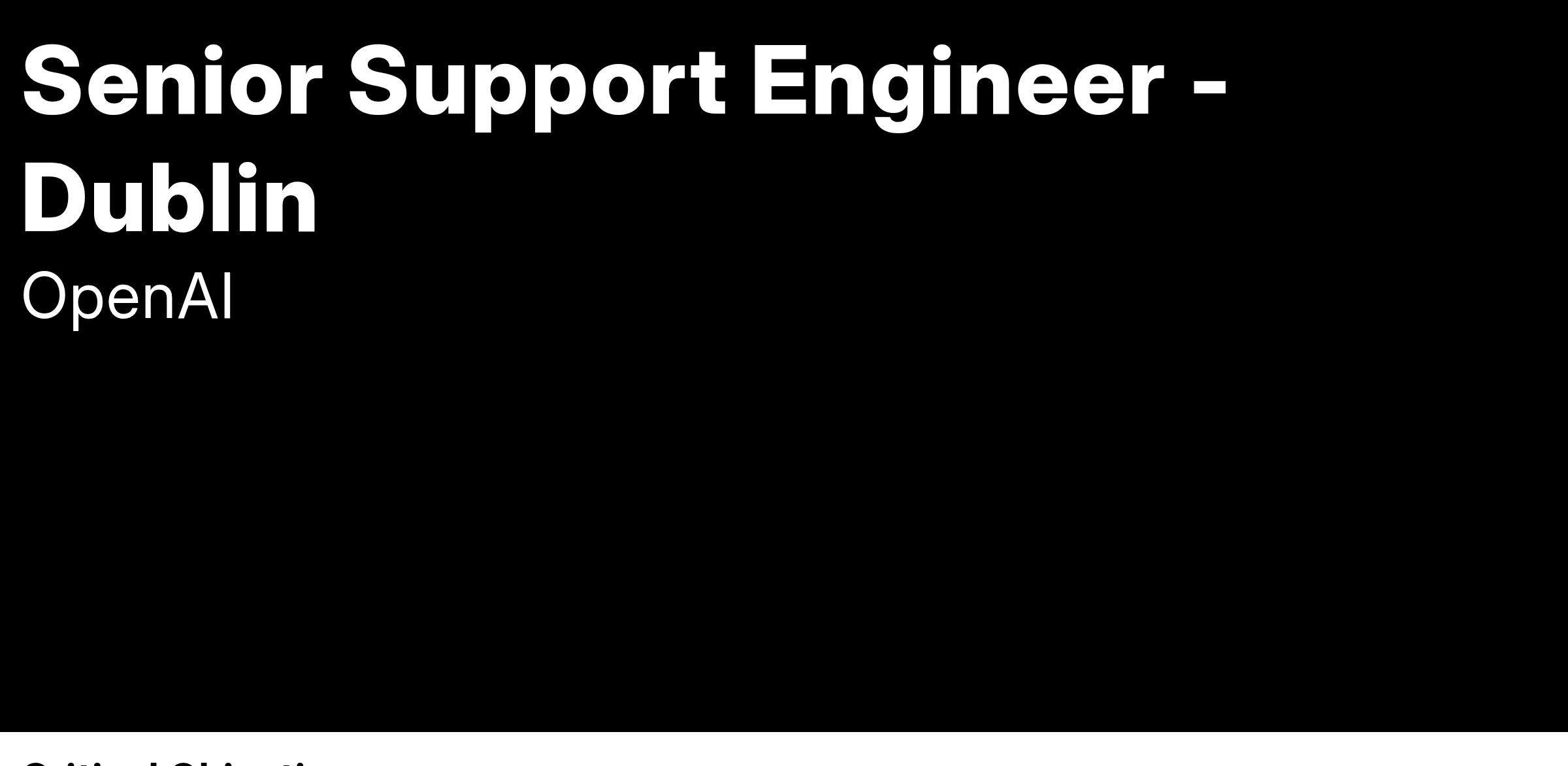 We are looking for a Senior Support Engineer to collaborate directly with our strategic enterprise accounts, helping solve some of the most difficult problems faced by our Customers. You will be part of the best technical troubleshooting team at OpenAI, and our Customers and Engineering teams will look to you for technical guidance in addressing the most technically difficult issues in our environment. You will play an integral role in building knowledge within the team and be part of strategic initiatives for organizational and process improvements. Working directly with our most strategic Customers - You will be crucial to the success of the most innovative, disruptive, and high-scale AI solutions being built with the OpenAI API platform.
