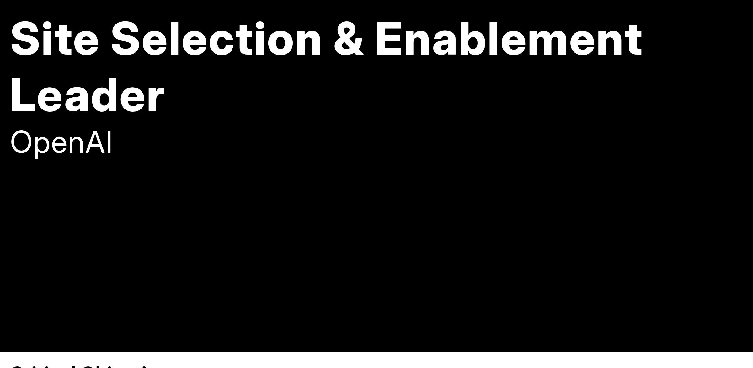 OpenAI is seeking someone who is excited by massive global challenges spanning thousands of stakeholders; someone motivated by driving critical decisions that shape the infrastructure, compute, and suppliers landscapes both for OpenAI and the entire industry. Specifically, the Infrastructure Strategy & Delivery team supporting Stargate is seeking an experienced and ambitious and driven leader to spearhead our Site Selection & Enablement team.