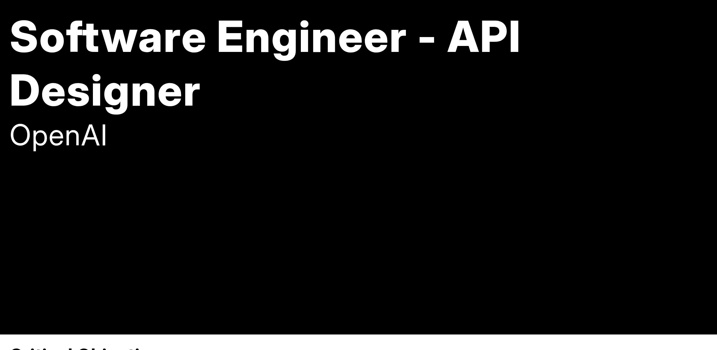 We are looking for a software engineer to own the design of our APIs. Our API is our product, and as such we treat its design and development with care and intentionality. Every endpoint, every field name, and every enum value is a product interface that we want to design well. We are looking for engineers who not only love building APIs, but who will also sweat the details around API design and have a discerning taste for well designed API experience. You will play a major role in shaping the future roadmap of the OpenAI API – by both building and designing it.
