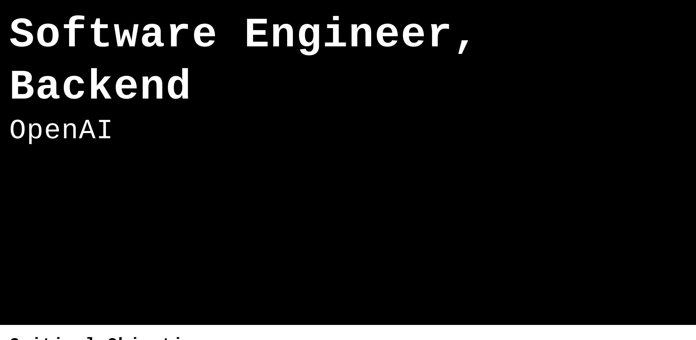 As OpenAI scales, we’re looking for experienced, problem-solving engineers to build new products and scale our systems. Our success depends on our ability to quickly iterate on products while also ensuring that they are performant and reliable.