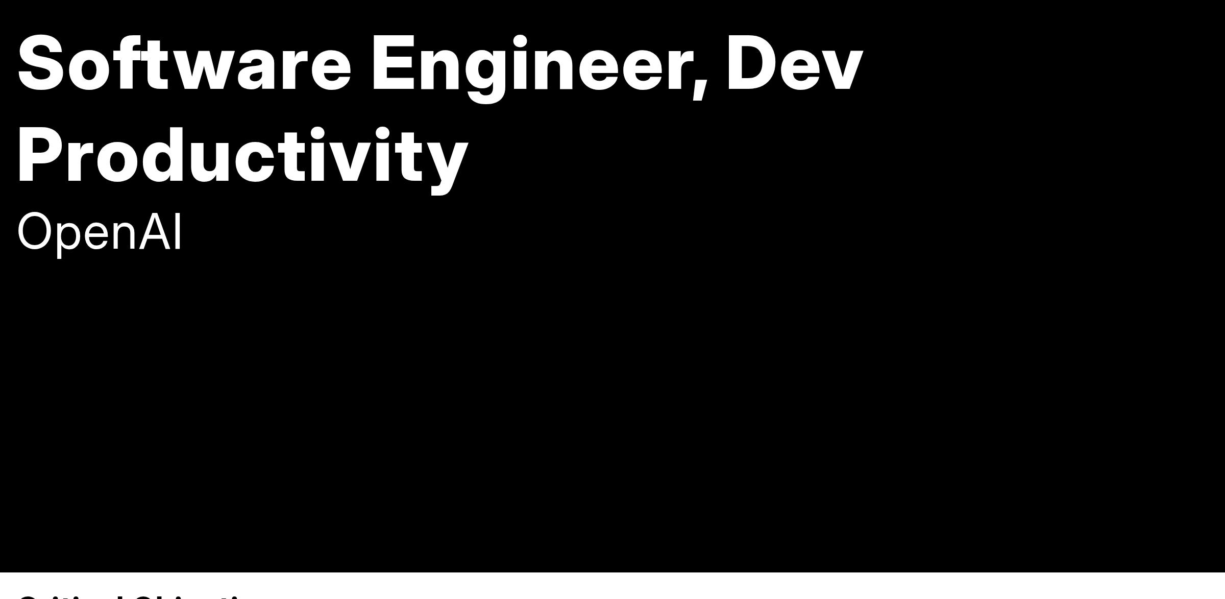 The Engineering Acceleration team designs, builds and maintains the foundational systems that engineers use to build ChatGPT and the API. This is a fast-growing team and you will get a chance to own and define the strategy, vision, and plan for how to increase developer productivity.