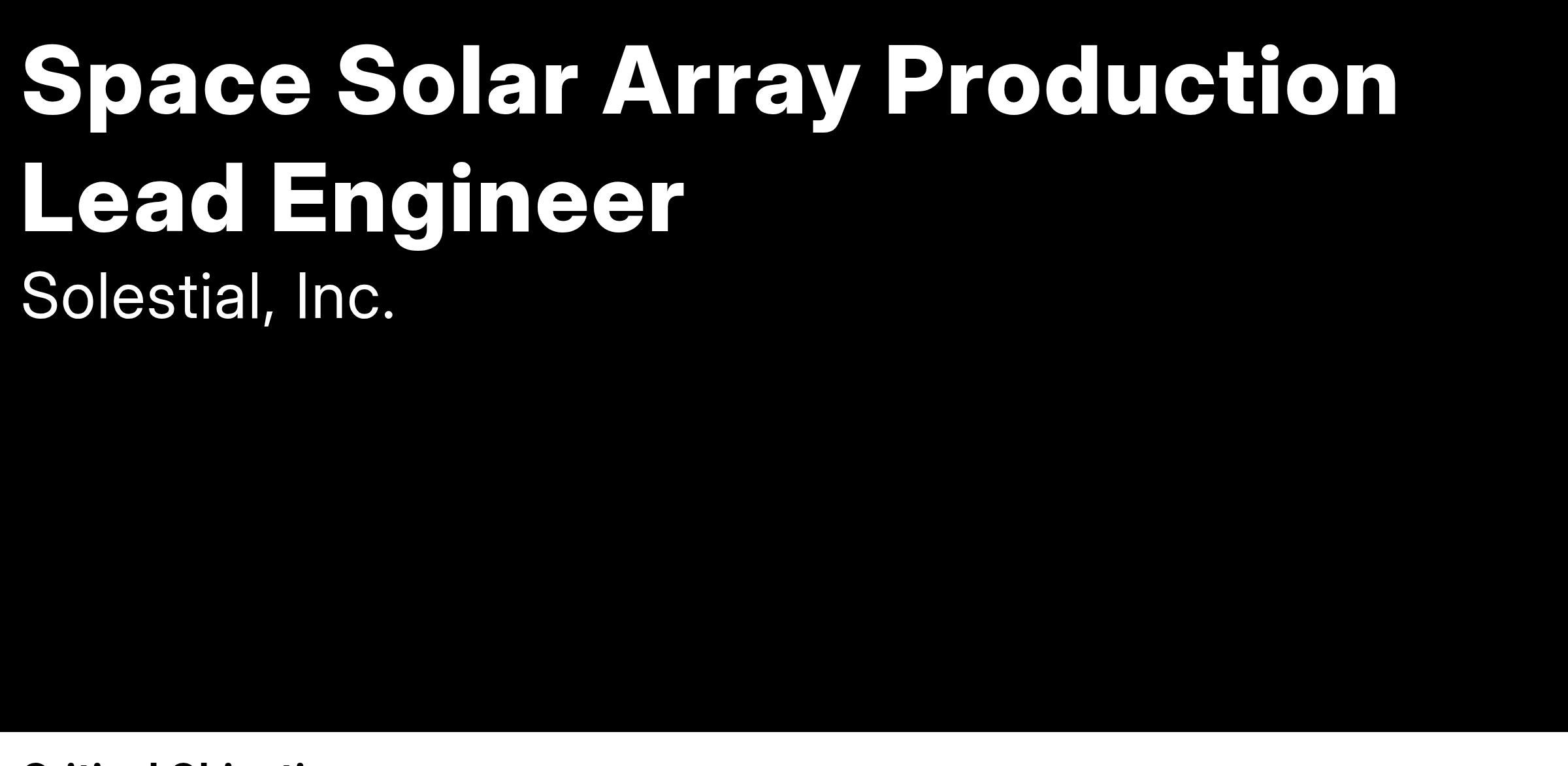 Solestial, Inc. is a solar energy company for space. Solestial’s core technology is a breakthrough ultra-thin silicon solar cell that can self-cure radiation damage at normal operating temperatures in space, packaged in a flexible, lightweight panel designed to achieve minimum degradation for up to 10 years in LEO. Solestial panels can be mass-produced using automated machines, resulting in costs 90% lower than incumbent technologies, with virtually unlimited manufacturing capacity. From today’s satellite constellations and research projects to tomorrow’s utility-scale energy infrastructure and services in space, Solestial is powering the new space economy.