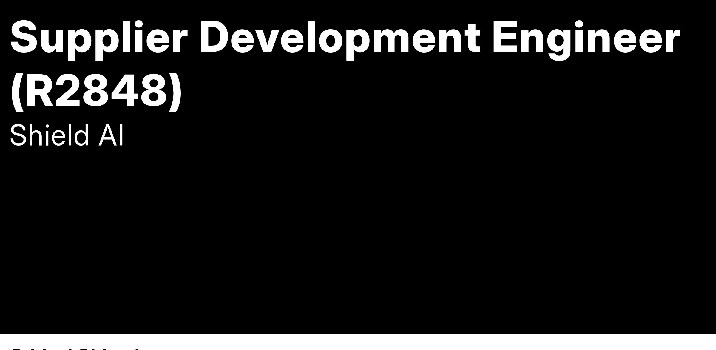 We are seeking a highly skilled and motivated Supplier Development Engineer to join Shield AI, focusing on mechanical components (e.g., composites, 3D printed, injection molded, and machined parts) and engines. The ideal candidate will have a strong background in supplier development, quality engineering, production process improvement, and supply chain management within the aerospace industry. This role is critical in enhancing supplier performance by solving supplier challenges that impact quality/on-time delivery/scaling, supporting the onboarding of suppliers to new designs, and delivering on our mission to deliver affordable and autonomous mass at scale.