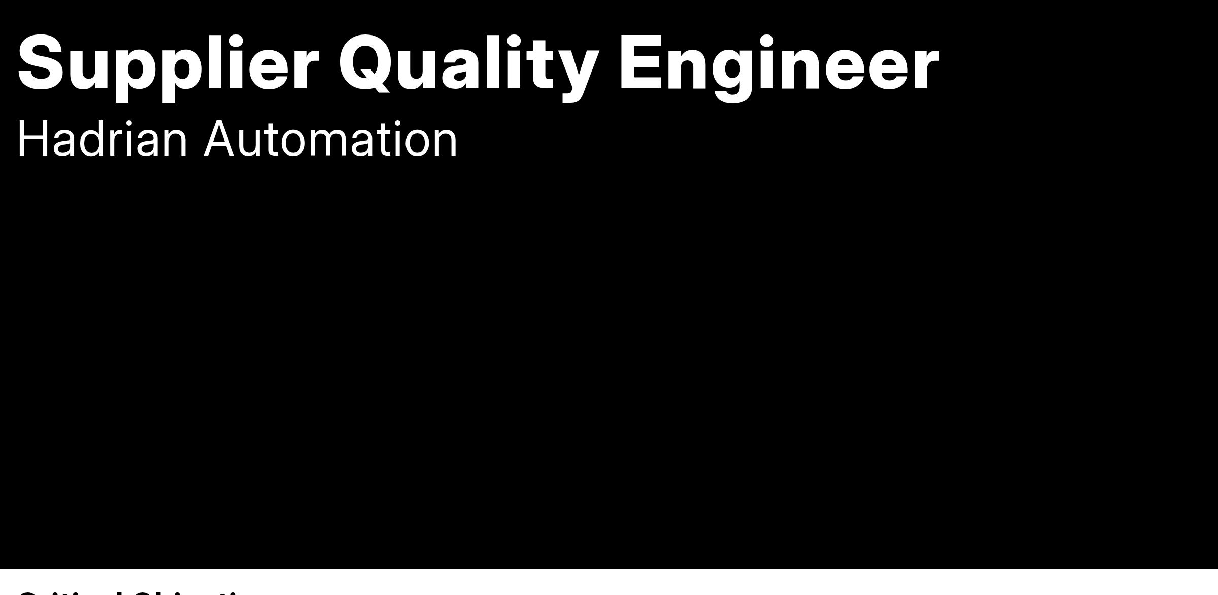 Build, Edit, Scale: Approaches the role with a long-term vision, not just maintaining quality but actively building and improving systems that can scale as Hadrian grows. Sees beyond immediate problems to create lasting solutions.